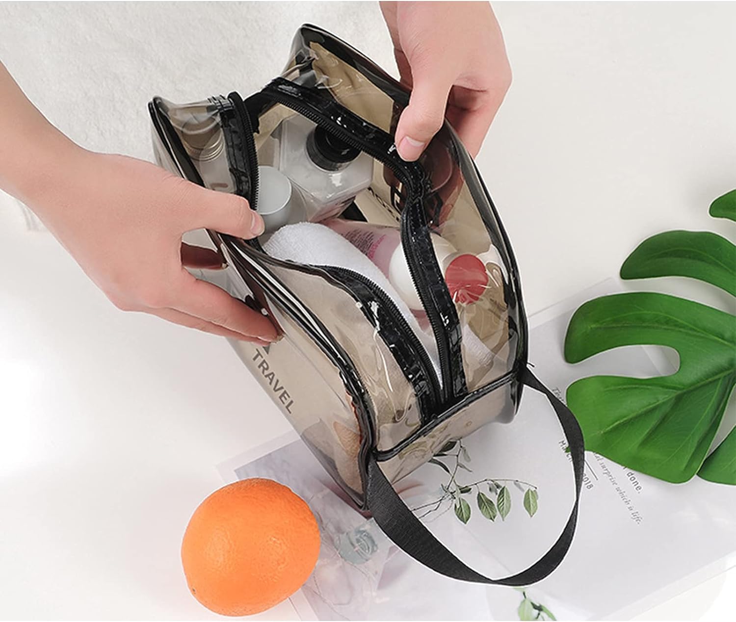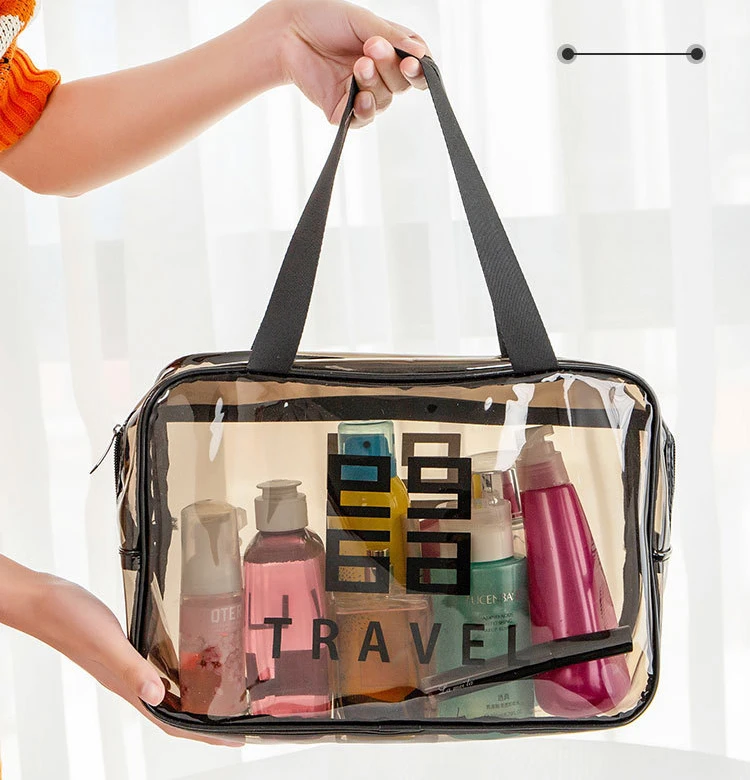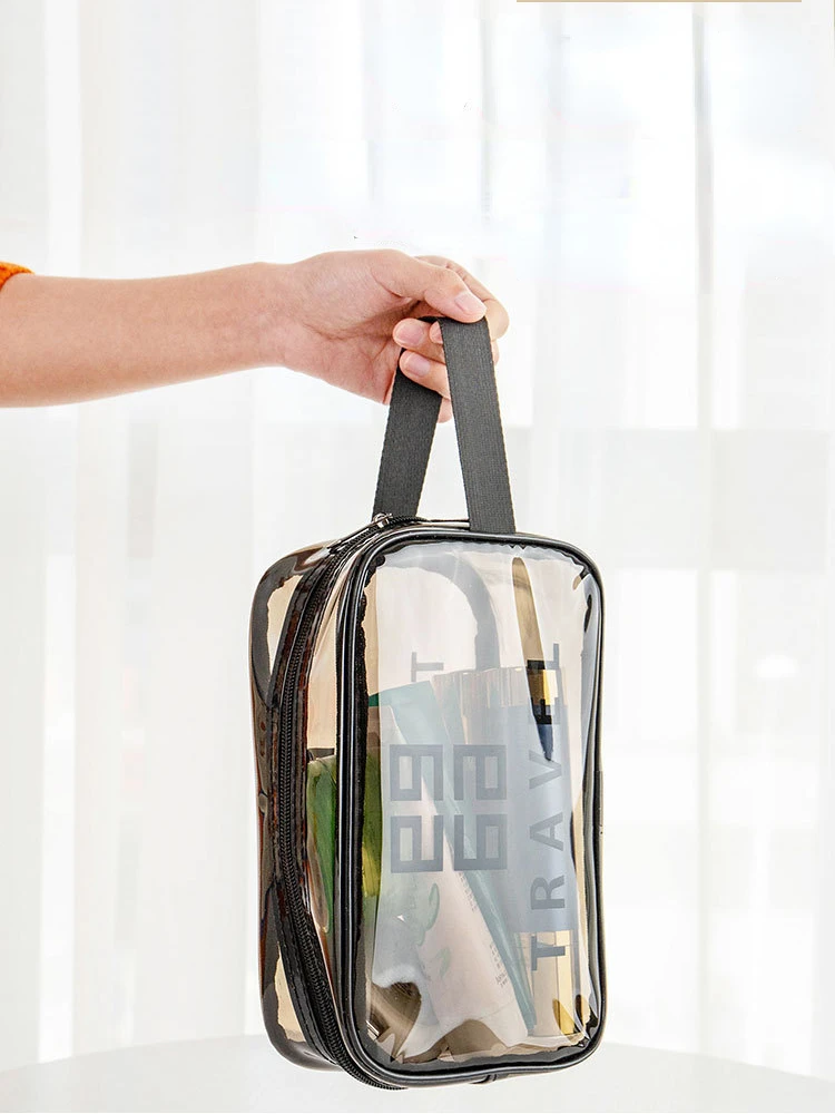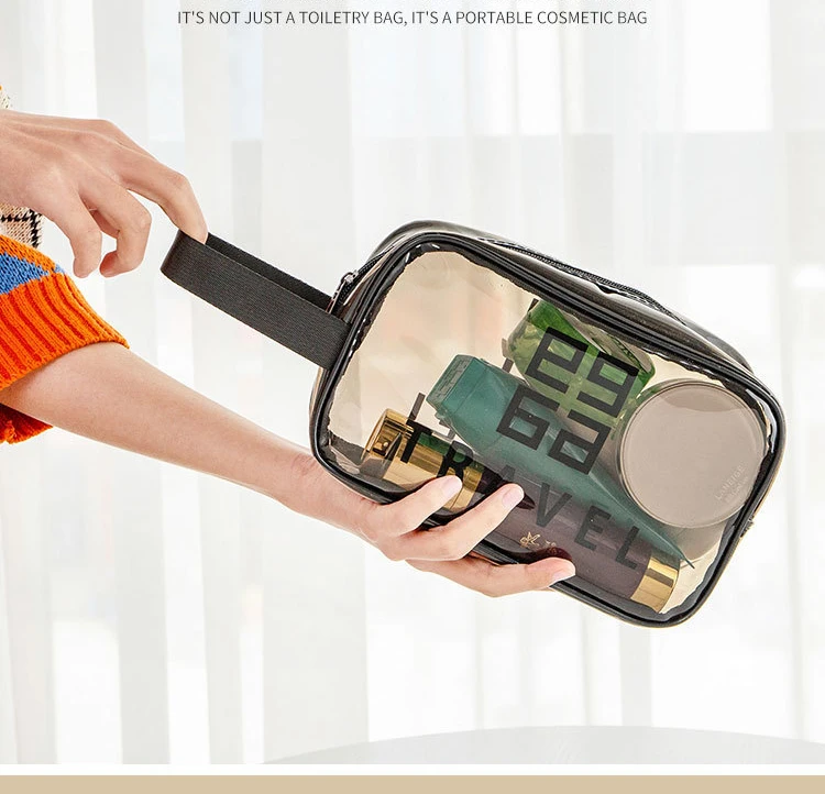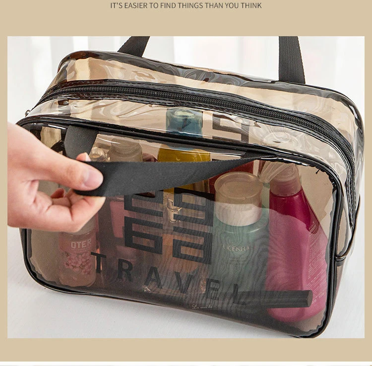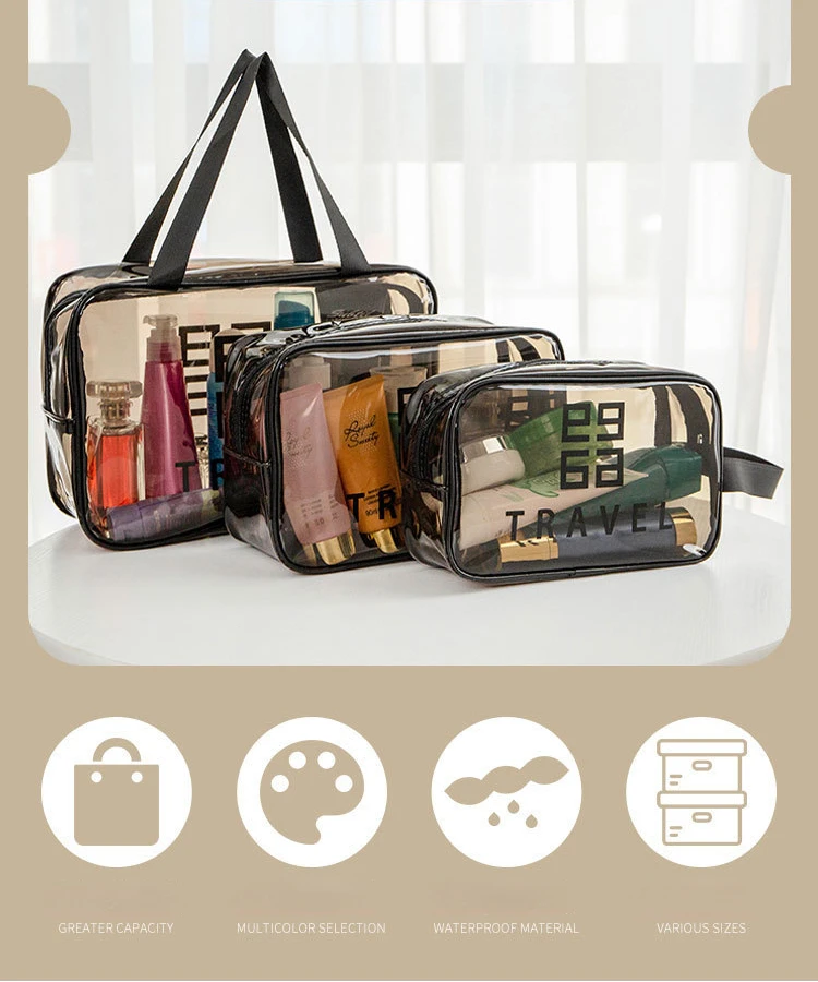 Grande capacité : Le sac de lavage de voyage portable a un intérieur spacieux qui peut accueillir tous vos cosmétiques et articles de toilette, le rendant parfait pour les longs voyages. • Imperméable : Cette pochette de rangement de maquillage est faite de nylon imperméable, garantissant que vos cosmétiques restent au sec même dans des conditions humides. • Transparent : La conception transparente du sac de lavage de voyage portable vous permet de voir facilement ce qu’il y a à l’intérieur, ce qui le rend pratique pour trouver vos produits préférés. • Multi-fonctionnel : Cet organisateur cosmétique peut être utilisé non seulement pour stocker le maquillage, mais aussi pour garder d’autres petits articles comme les accessoires pour cheveux, les brosses à dents et les peignes. • Informations sur le produit • Nom: sac de lavage de voyage/sac de maquillage • Trompette: • Matériau: cuir PU + matériau imperméable PVC Taille: • Grand: 30cm * 12cm * 21cm • Moyen: 27cm * 10cm * 17cm • Petit: 23cm * 10cm * 13cm