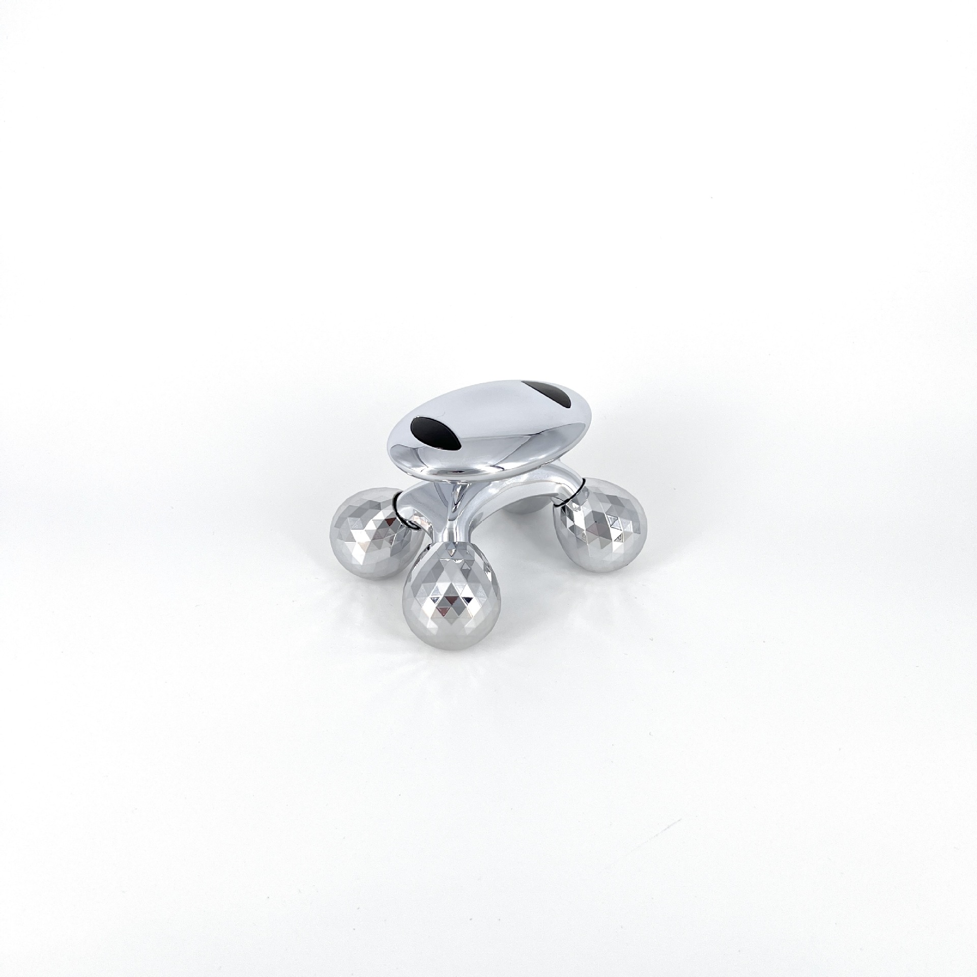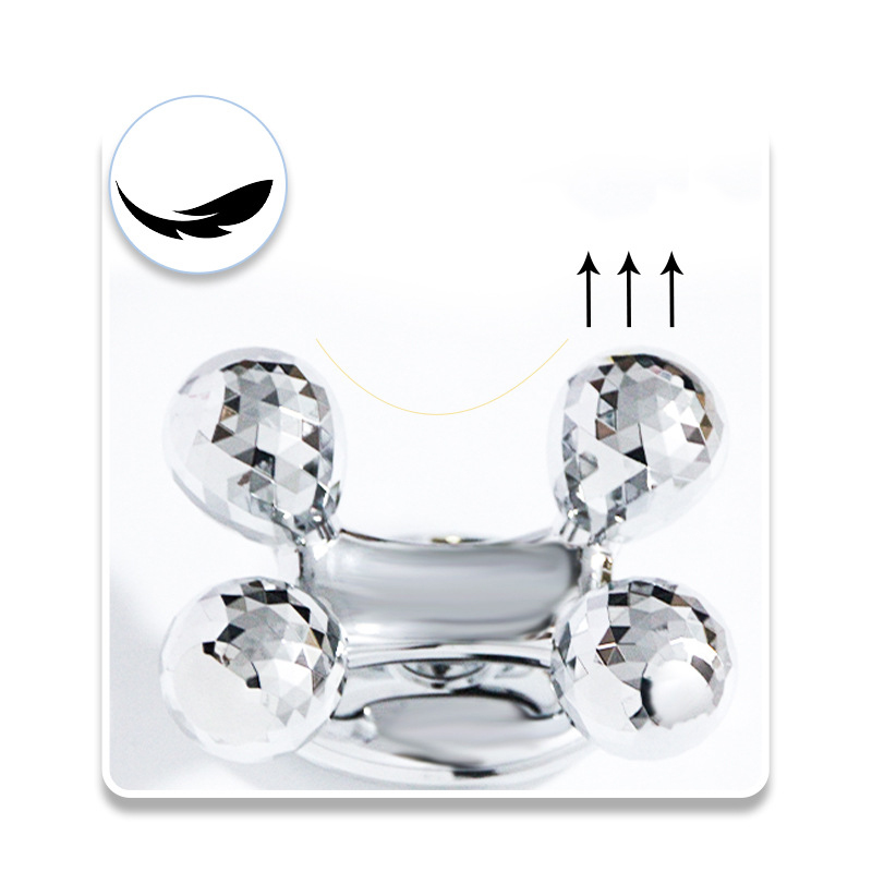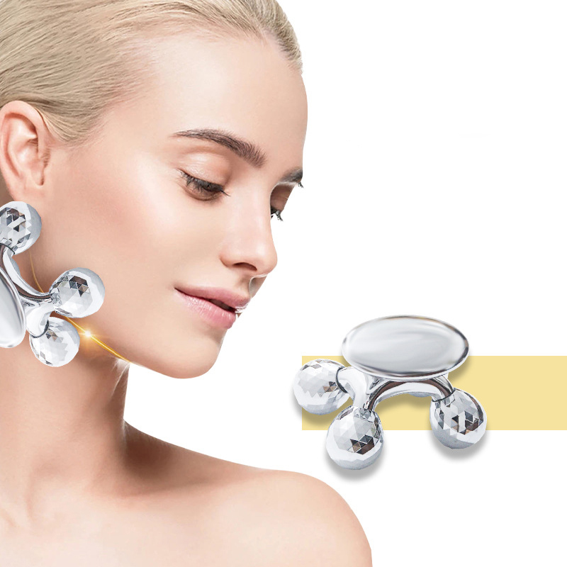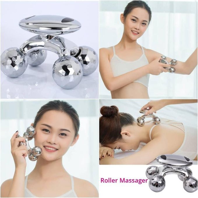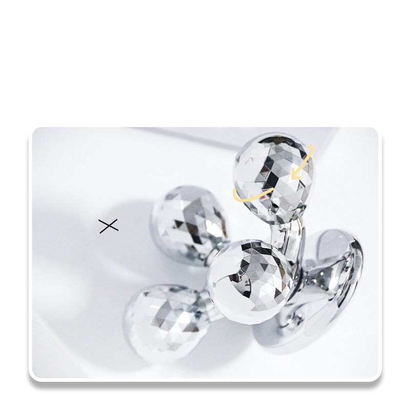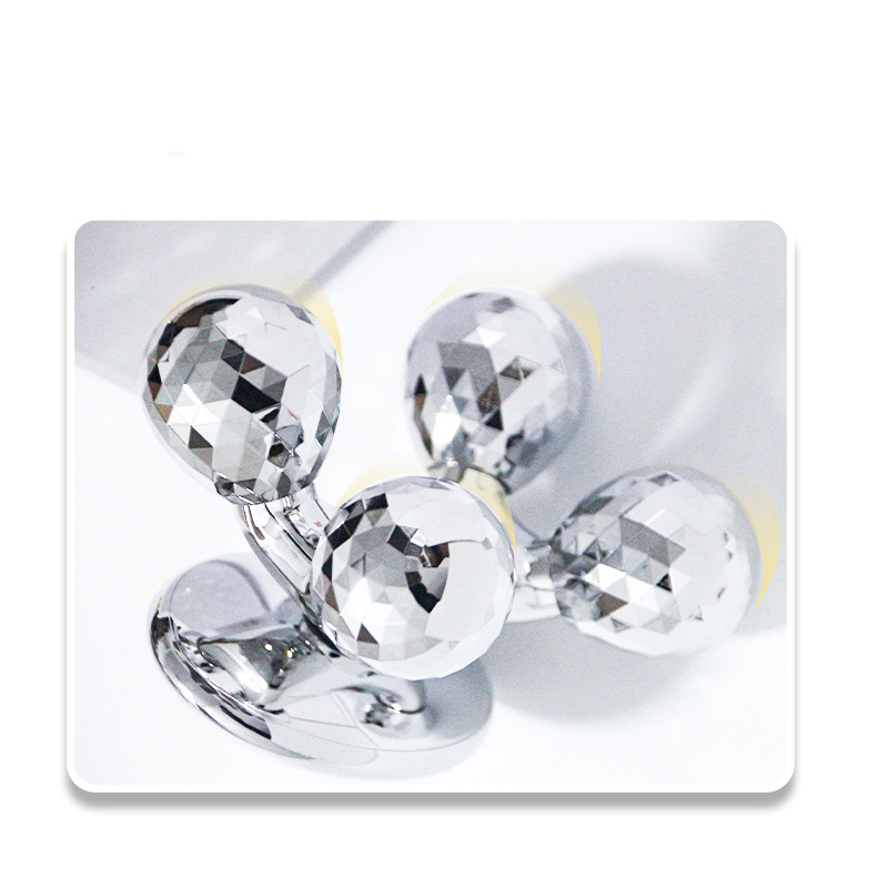 roues de drainage • Couleur argent • Masseur pour toutes les parties du corps • Masseur manuel sans problèmes de piles et d’électricité • Solide et élégant • Les boules de rouleau sont conçues pour simuler des gestes de massage de beauté • Peut pivoter pendant l’utilisation • Pour toutes les parties du corps