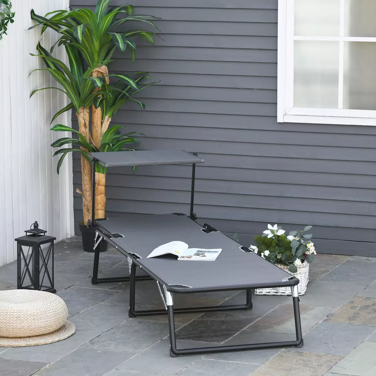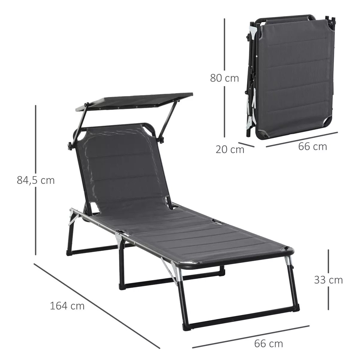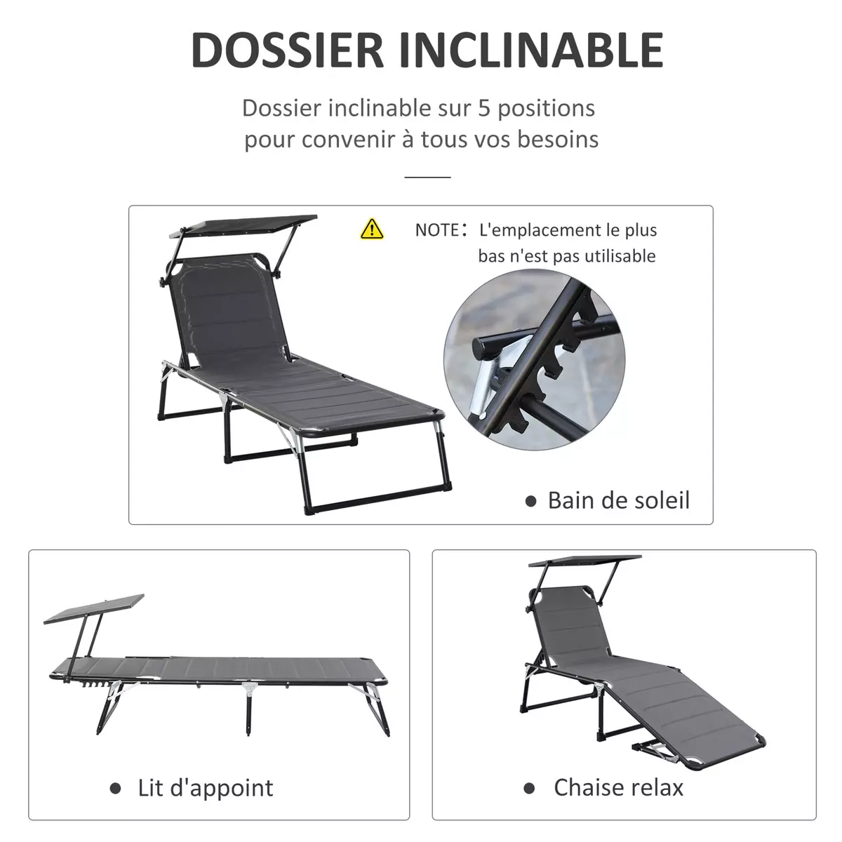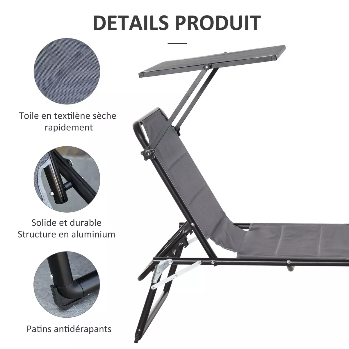 Chaise Longue Pliable avec pare-Soleil en tissu Oxford 600D Capacité de poids 120 kg V4