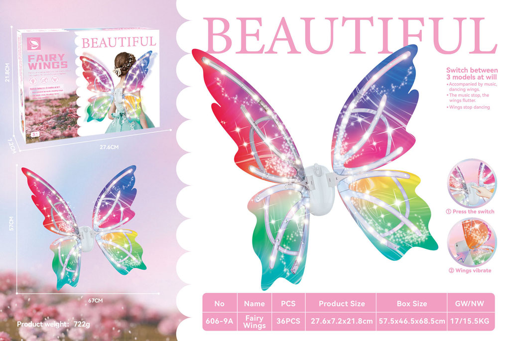 Si vous avez une petite fée ou une princesse, alors ces ailes sont un cadeau de rêve ! • De grandes ailes de fée qui brillent et changent de couleur, juste magique • Il est facile à accrocher aux vêtements et ira mieux avec une robe • L'accessoire parfait pour toutes les célébrations, mascarades, fêtes et jeux sans fin • Dimensions de l'aile : 67x57cm • Un cadeau incroyable dont chaque enfant se souviendra