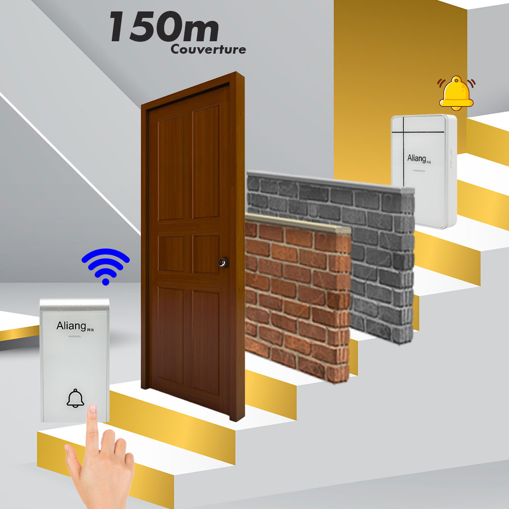 •284 تقييم•تم بيع +186ALIANG Sonnette sans fil 38 sonneries 150m résistante a l'eau et la poussière