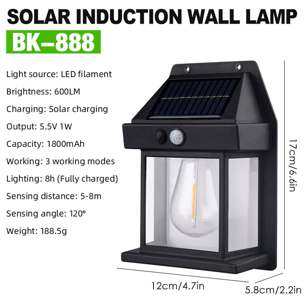 •316 تقييم•تم بيع +1KApplique Murale Solaire en Tungstène avec Détecteur de Mouvement Intelligent, 3 Modes