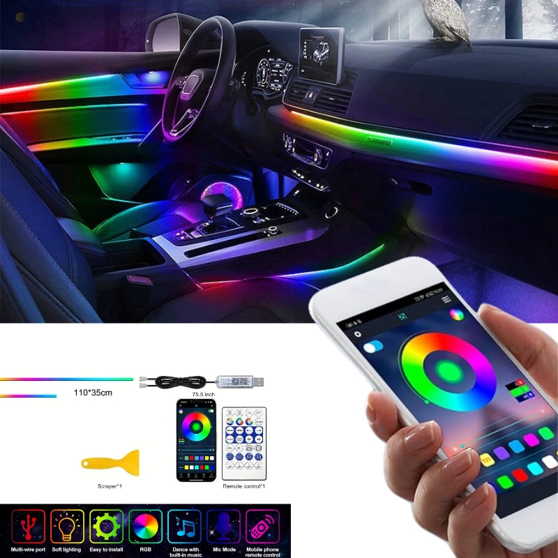ديكور موسيقي أنيق: يضفي لمسة من الرقي والأناقة على مقصورة السيارة، مما يجعل القيادة ليلاً أكثر متعة وتميزاً، خاصة عند استقبال الضيوف أو الأصدقاء.