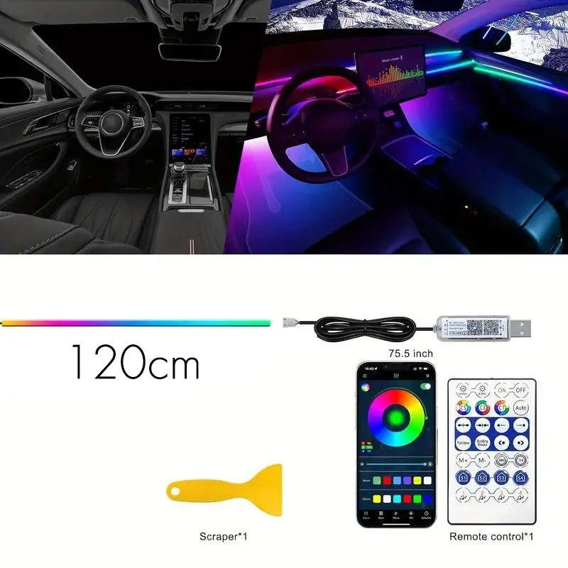Bande lumineuse LED en néon RGB pour intérieur de voiture, éclairage suivi son d'ambiance Avec app et télécommande