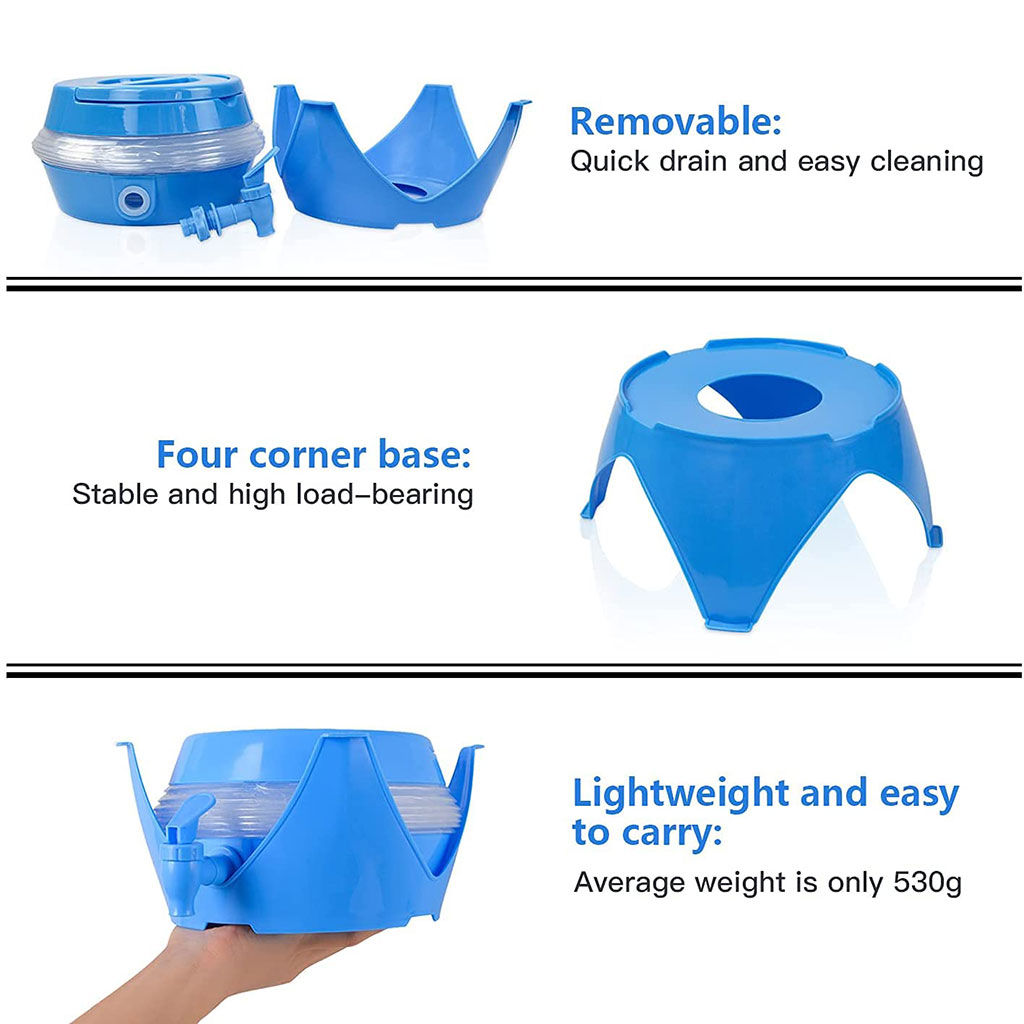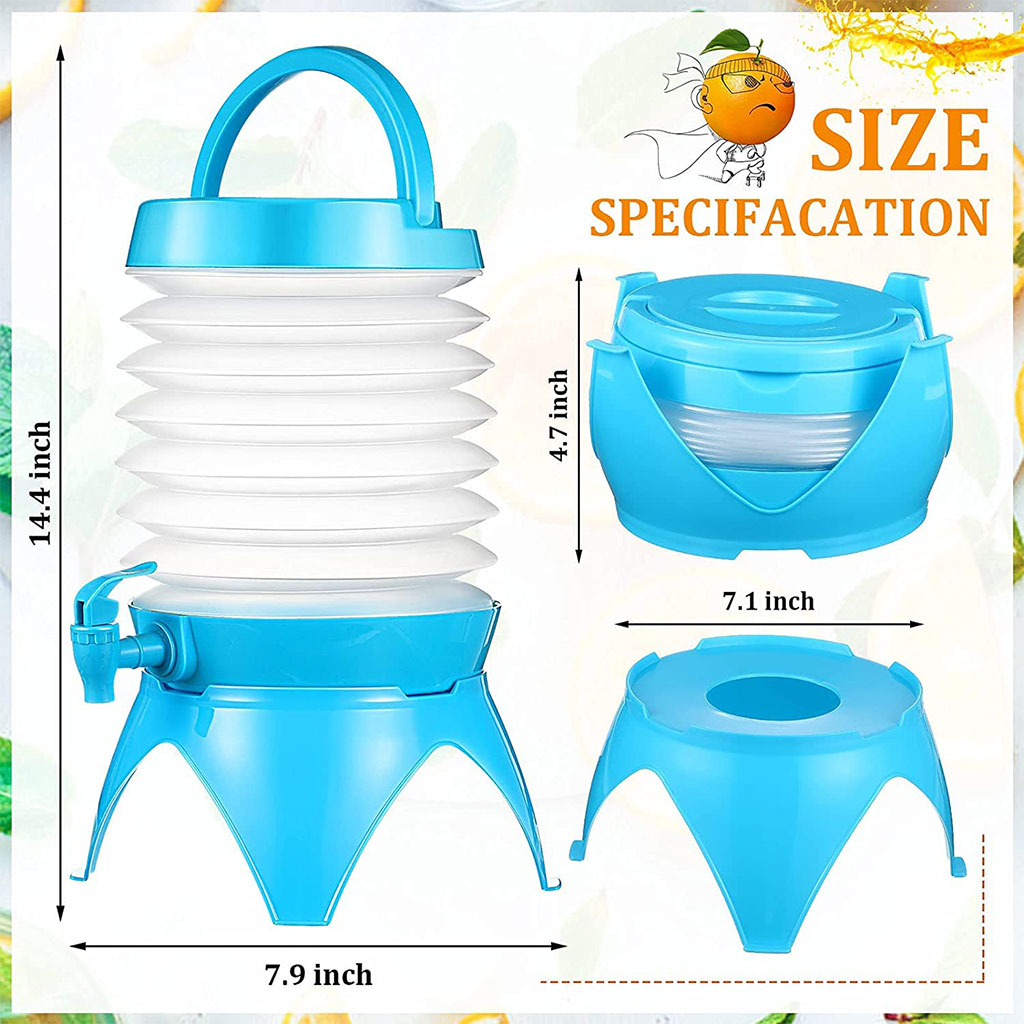 Une fois que vous avez rempli le pichet avec votre boisson préférée, vous pouvez congeler le récipient lors des journées chaudes ou le remplir de glace pour prendre une boisson fraîche partout où vous allez. Utilisez le bec verseur anti-goutte en bas pour distribuer votre boisson froide et dissuader tout le monde à votre réunion. • Ce produit est équipé d'un robinet. Il peut être utilisé comme distributeur d'eau ou comme machine à bière à l'extérieur de la maison. La base d'eau ou de bière est constituée d'un matériau PP épais. Conception de produit ingénieuse, petite taille après rétrécissement, facile à ranger. Lorsque vous n'en avez pas besoin, vous pouvez facilement le mettre dans votre sac de voyage, occupe un petit espace pour vous offrir des activités de plein air plus pratiques et plus agréables. • Le corps du distributeur de boissons extra large de style accordéon se replie facilement de 11" à moins de 5" de hauteur pour un rangement facile. Parfait pour vos rafraîchissements préférés tels que la limonade, l'eau potable, le thé glacé, le jus, la limonade et plus encore. • Facile à nettoyer l'intérieur avec une éponge humide. Ne passe pas au lave-vaisselle.