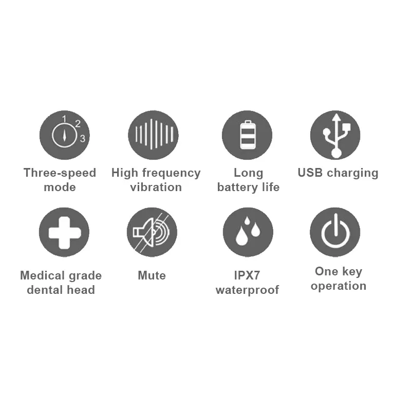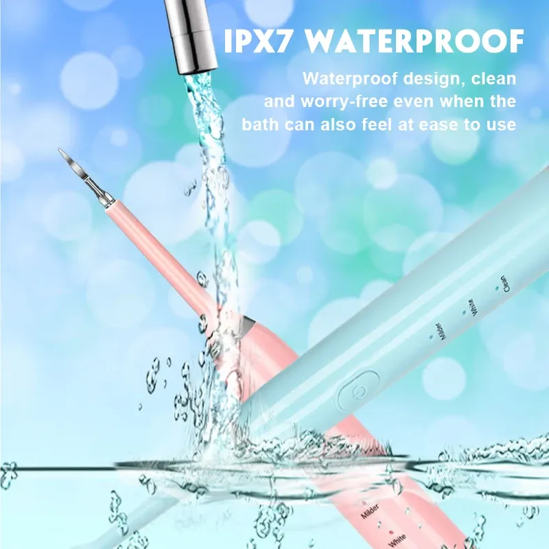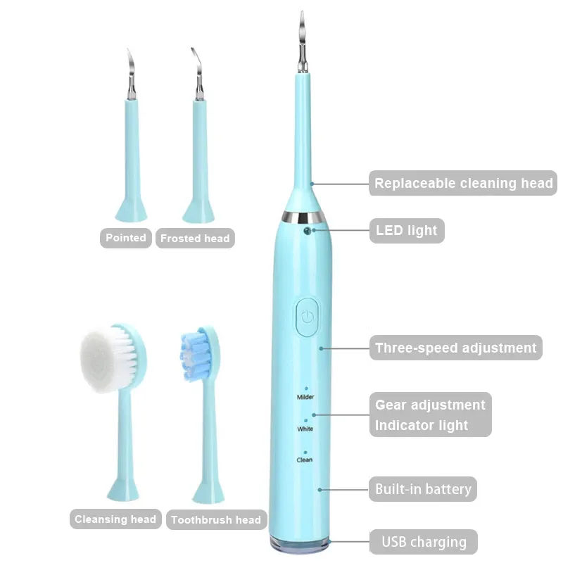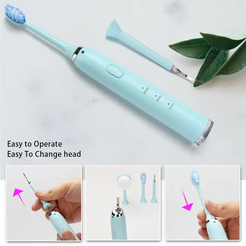 Brosse à dents à ultrasons 3en1 Nettoyeur de dents étanche IPX7 Kit de nettoyage dentaire en mode muet à trois vitesses avec charge USB