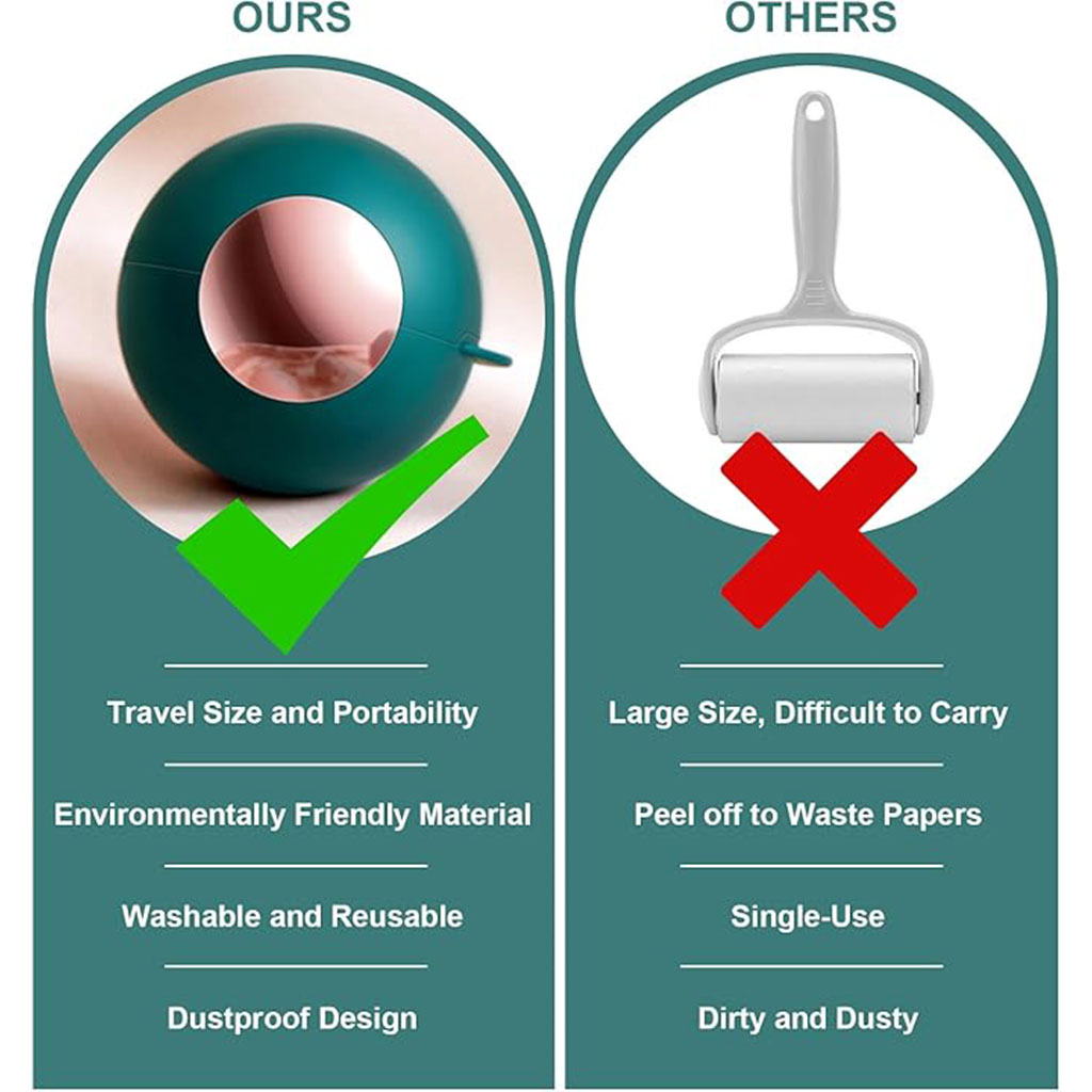 سهولة فائقة في التنظيف: عندما تمتلئ بالوبر، ببساطة انزعي الغطاء الشفاف واغسلي الكرة تحت تيار من الماء الجاري. وبمجرد أن تجف، ستستعيد قدرتها على الالتصاق فوراً وكأنها جديدة!