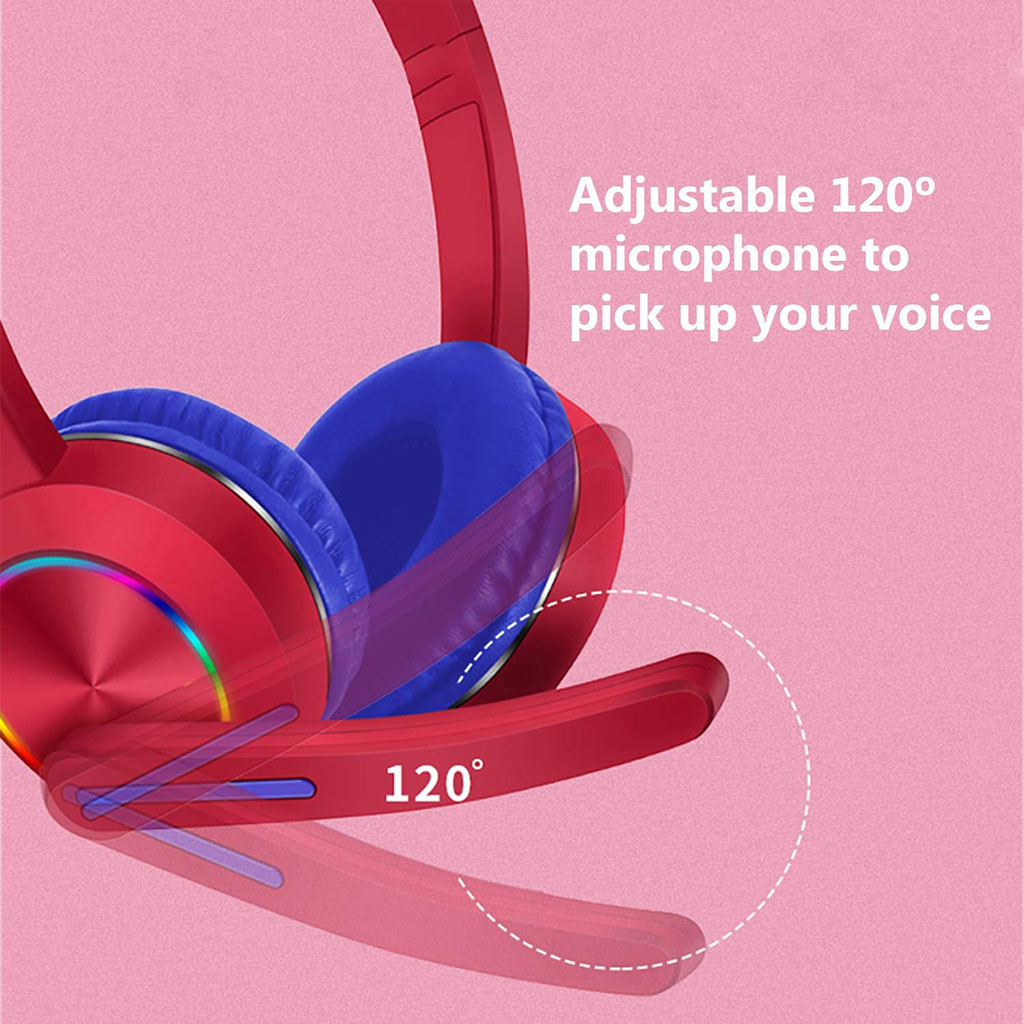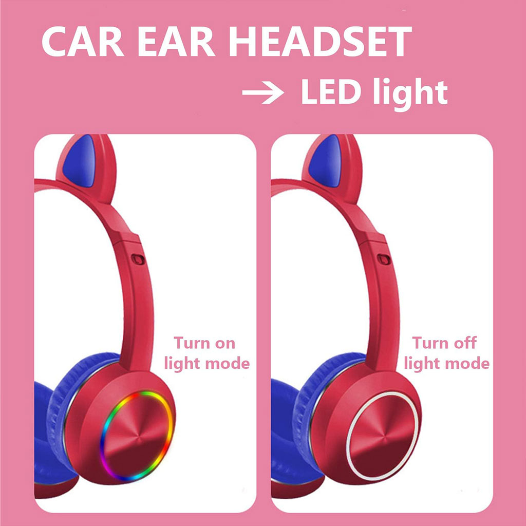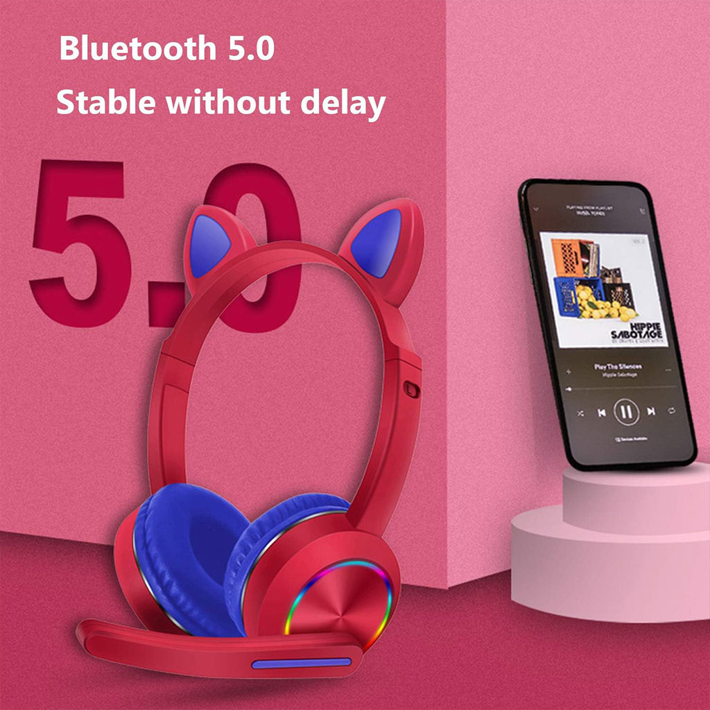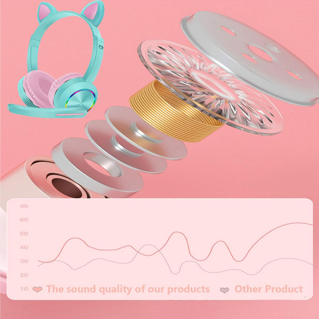 Bluetooth 5.0 + EDR. Haut-parleur puissant de 40 mm avec la technologie Bluetooth 5.0, vous offrant les besoins d'un son naturel de qualité et de basses puissantes tout en restant pratique. Une fois que vous avez terminé le correspondance, vous n'aurez plus à vous soucier de la correspondance à nouveau. Il suffit d'allumer le casque et il se connectera à votre appareil. Signal de connexion Bluetooth stable, appel de haute qualité avec micro, peut être utilisé pour les cours de vidéo en ligne pour les enfants. • Design ludique inspiré du chat : combinant un son de haute qualité avec une mode unique, les écouteurs pour enfants sont finis avec deux oreilles de chat sur le haut du bracelet. Peu importe que vos enfants soient un chat ou non, ils sont mignons au-delà du doute. Et la forme impressionnante attirera le fantaisie, en particulier pour ceux qui sont obsédés par le chat. Les écouteurs liés au chat combleront le rêve et le fantaisie de chaque fille. • Lumière LED marche/arrêt : allumez ou éteignez le bouton pour allumer ou éteindre la LED. Lorsque vous utilisez le casque pour enfants en mode Bluetooth, vous pouvez choisir de désactiver l'effet clignotant LED afin de conserver plus de batterie pour écouter de la musique plus longtemps. • Design sans fil : casque Bluetooth sans fil pour enfant, design sans fil Bluetooth. Le casque est adapté pour être porté à différents endroits, pour l'école, les voyages, l'avion. Le design coloré est le premier choix pour offrir en cadeau, et il convient à tous les types de personnes, casque pour enfants/adolescents/garçons/filles/adultes. Choisissez le casque et profitez de l'expérience musicale parfaite dès maintenant • 【Longue durée de vie de la batterie】- Le chargement est facile. Nos écouteurs à oreilles de chat ont une batterie de 300 mAh qui offre jusqu'à 5 heures de lecture de musique avec les LED allumées et jusqu'à 8 heures lorsqu'ils sont éteints