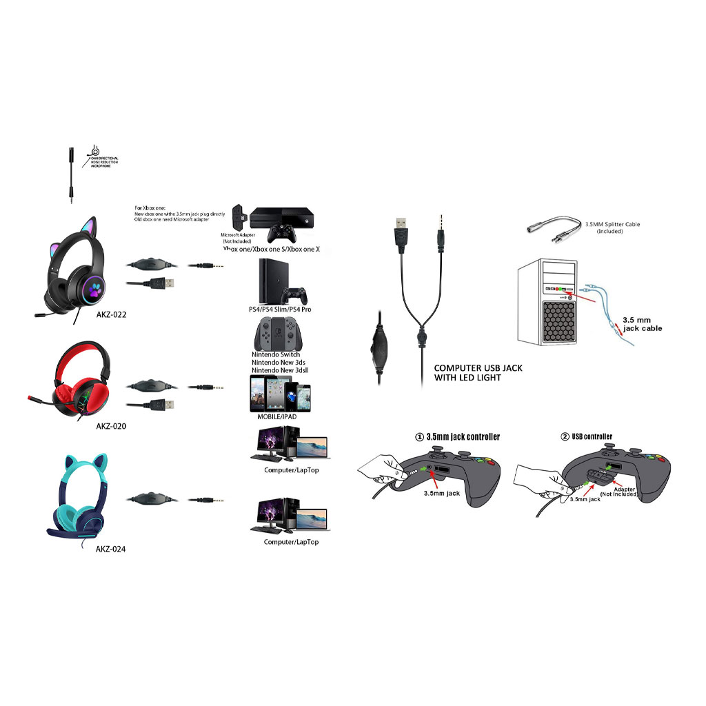 Casque Oreilles de chat Bluetooth avec micro AKZ-024