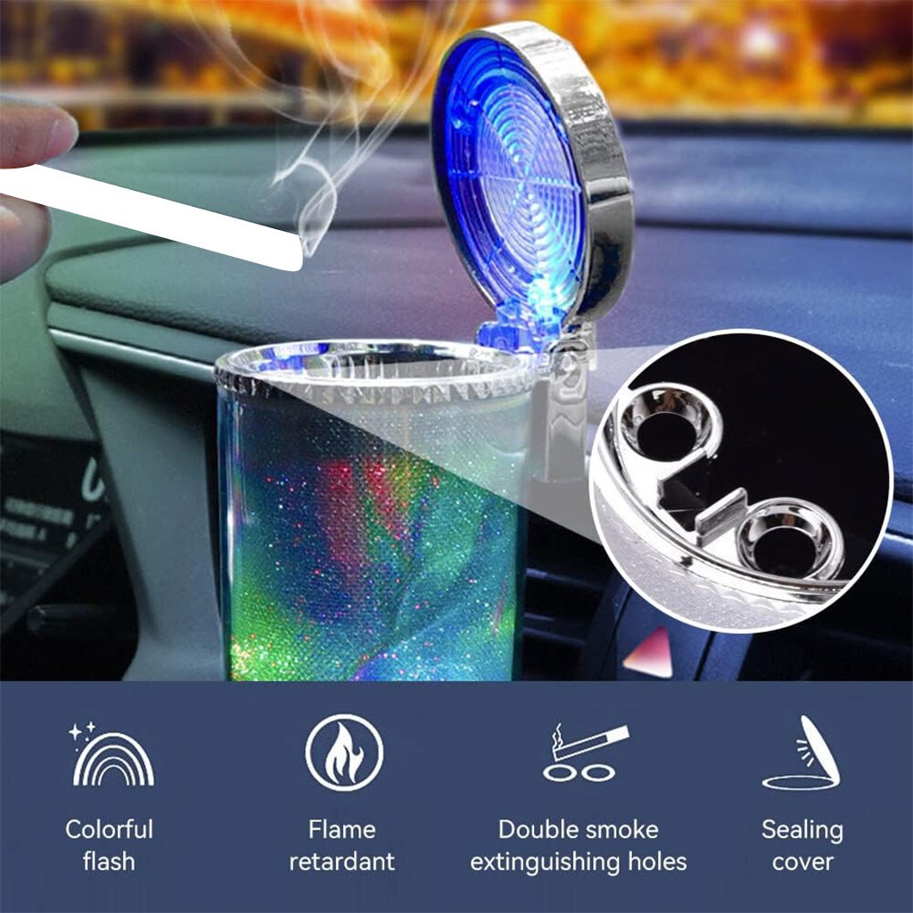 Avec support portable amovible - Nous vous fournissons un support portable, avec ce support, peut être placé n'importe où dans la sortie d'air, ce qui le rend plus pratique à utiliser. • Avec lumière LED et bouteille lumineuse - le cendrier s'allume immédiatement après l'ouverture du couvercle, vous pouvez donc le voir la nuit. • Bonne étanchéité, anti-odeur non propagatrice - avec couvercle anti-odeur a une excellente stabilité et étanchéité, vous offrant un espace propre et sans odeur. • Idéal pour les déplacements - peut être emporté partout. Il s'adapte aux voitures, camionnettes, camions et VUS et s'adapte parfaitement à la plupart des porte-gobelets intérieurs