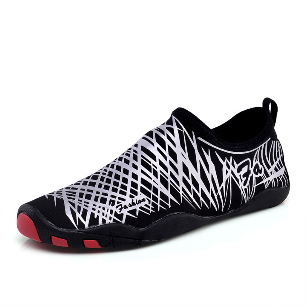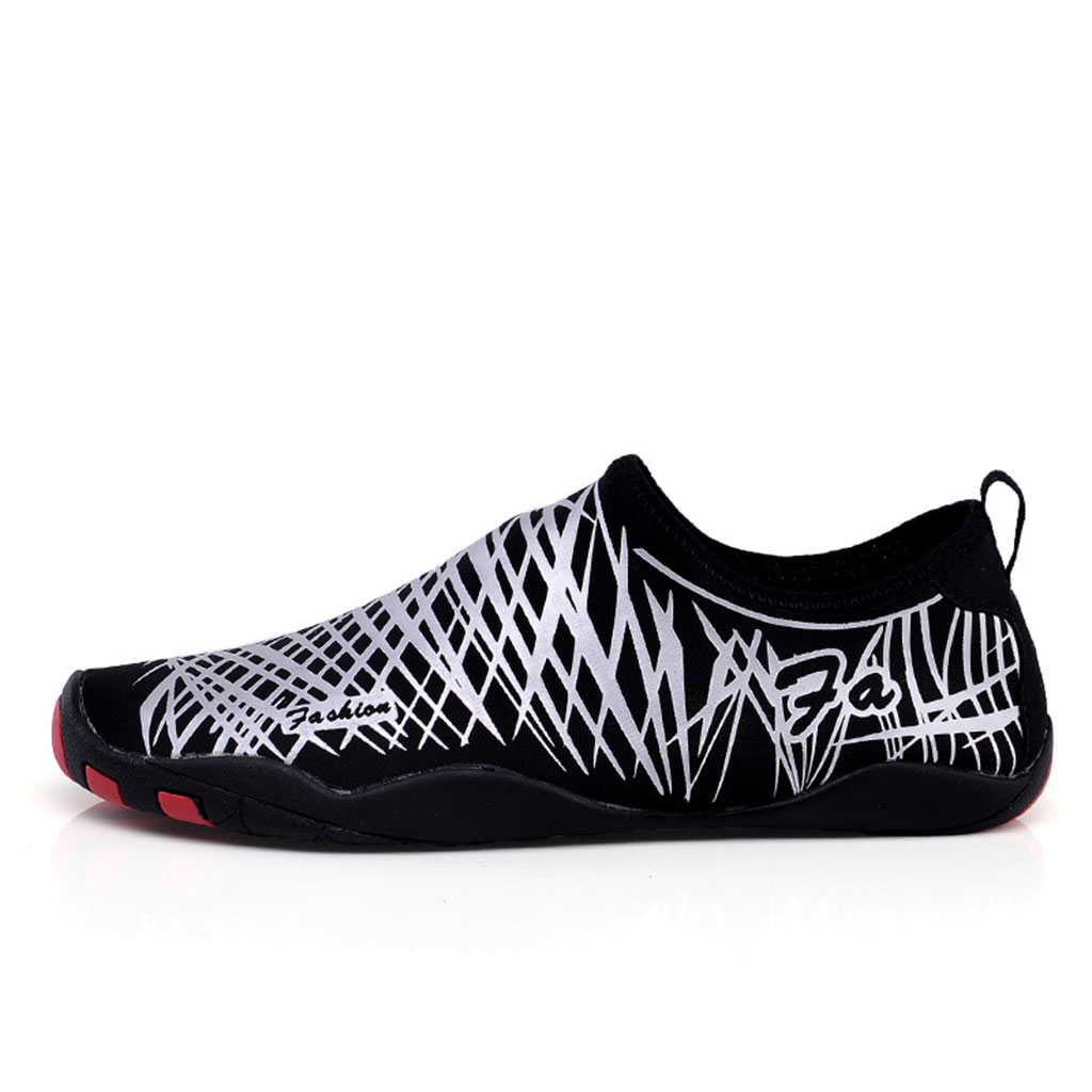 Semelle en caoutchouc : semelle en caoutchouc robuste et durable qui protège les pieds de la chaleur et des roches rugueuses. Semelle unique et de qualité supérieure avec sept trous sur chaque fond pour garantir un bon écoulement de l'eau, ce qui crée un environnement de chaussure plus frais et plus sain, à séchage rapide, super confortable pendant les sports nautiques. Comme les chaussettes, super légères et flexibles, vous font sentir une grande liberté et un confort optimal. Excellente alternative aux chaussures d'eau encombrantes ! Posséder une paire de ces chaussures peut vous rendre plus différent et à la mode avec un caractère individuel. • Pointure : 41/ 42/ 43