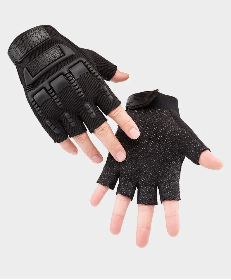 Caractéristique: • 1. Protégez vos mains contre l’abrasion et les rayures dans le sport et les activités exigeant à la fois protection et dextérité • 2. Demi Gants de doigts, enveloppés étroitement autour du poignet avec Velcro de poignet réglable, Pas rigide, pas encombrant, permet le mouvement et la dextérité • 3. Gants réalisés avec des matériaux respirants sans odeur et Conception d’évent fonctionnelle, confortable à utiliser par temps chaud ainsi que dans Saisons d’hiver douces • 4. Avec paume en cuir synthétique à double couche avec grille antidérapante • 5. Avec Paume renforcée, rembourrage des articulations et double couture, destiné à Utilisation lourde comme gants tactiques, gants de travail, gants de cyclisme, camping, Gants de chasse, de tir et autres gants d’extérieur • Paquet: paire Gants