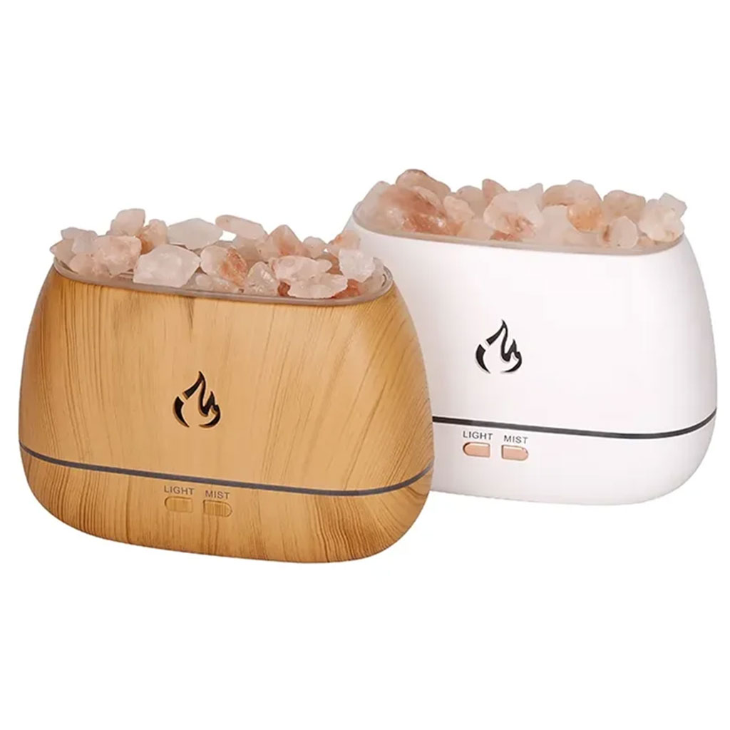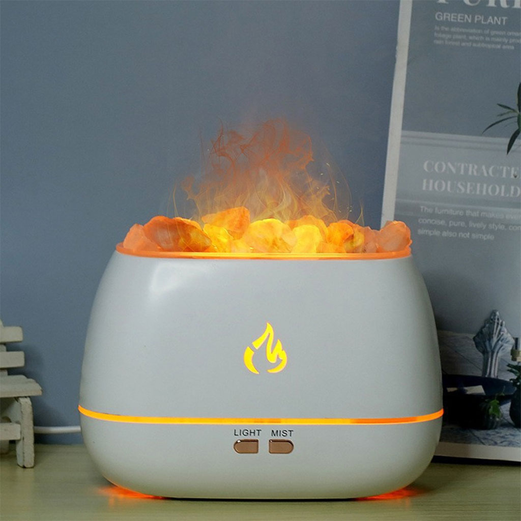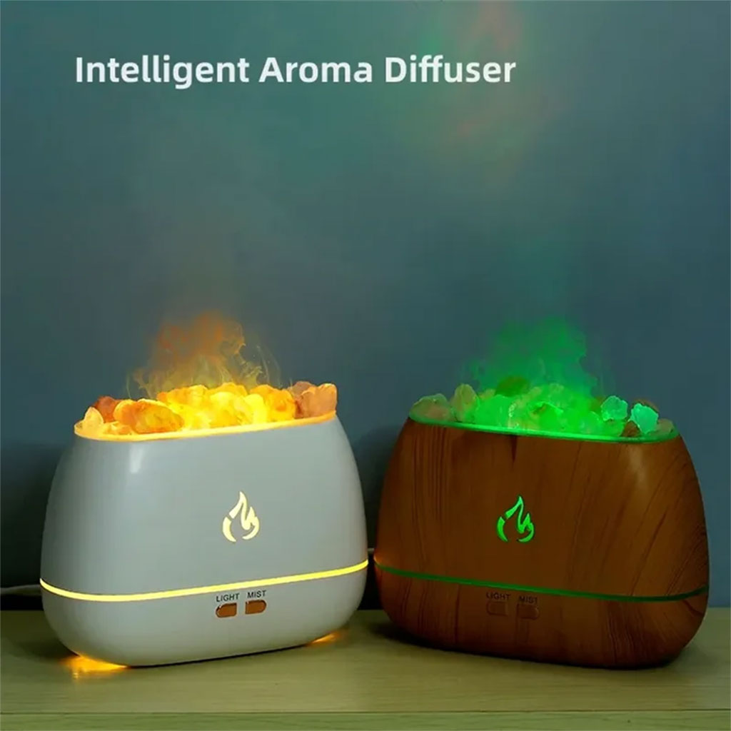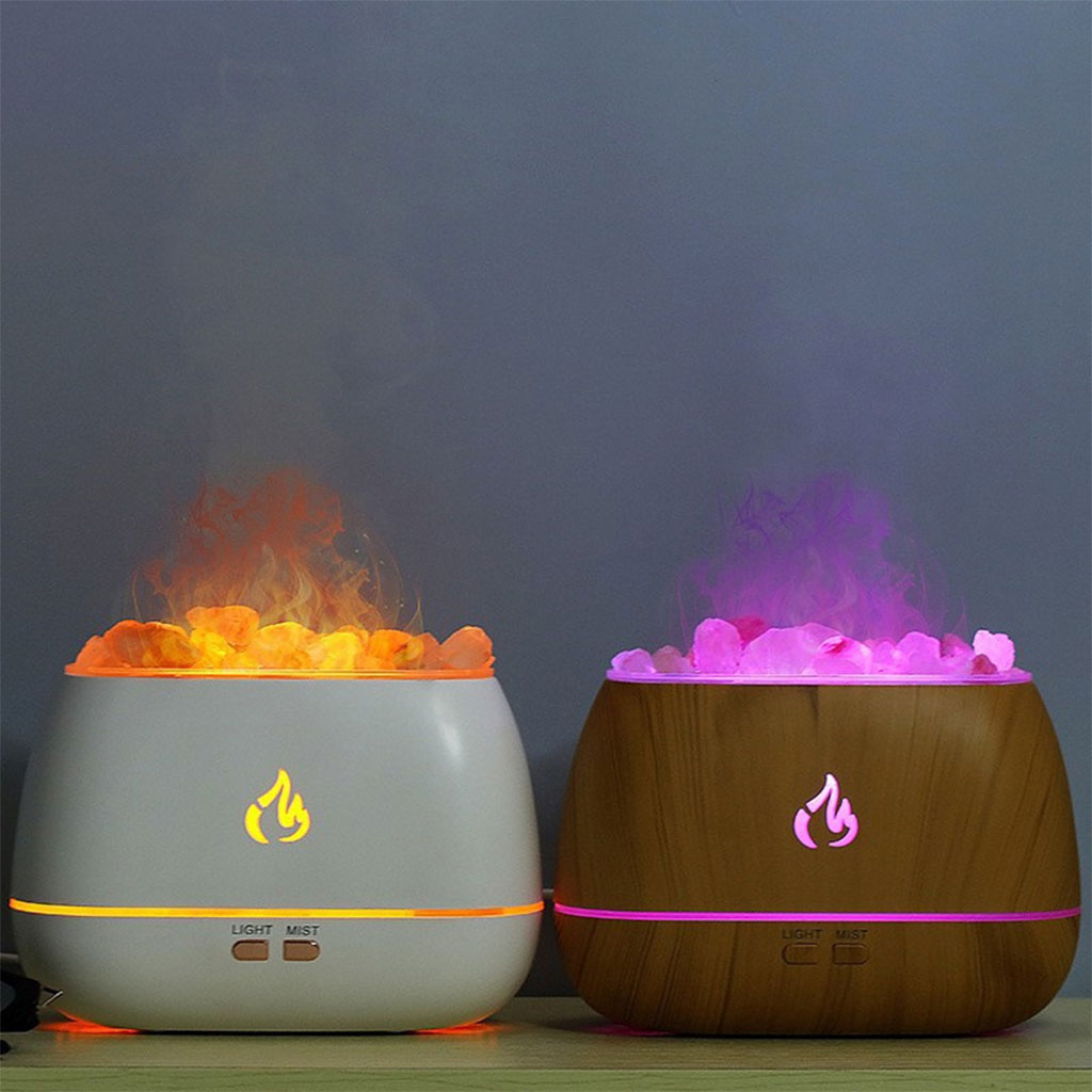 Diffuseur d'Huiles Essentielles à Effet Flamme, 7 Couleurs, Ultra Silencieux, 200 ml avec les Pierres de sel de l'Himalaya