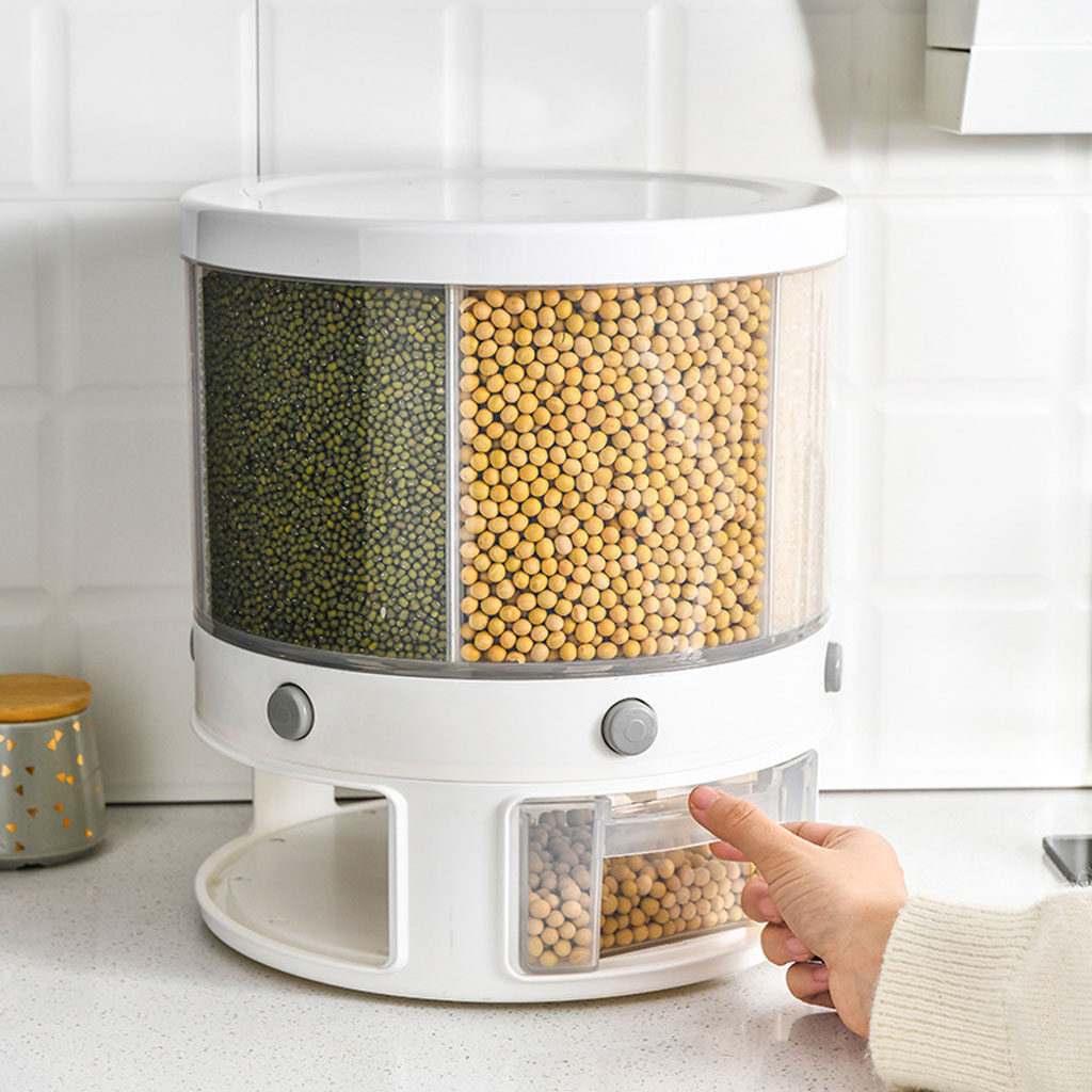 【Mesure intelligente】: Ce récipient de stockage des aliments peut quantifier automatiquement le riz et produire des produits à grains entiers. Le bouton rond peut être pressé avec une seule touche pour quantifier intelligemment les grains de riz ou d'autres aliments. • ★【Sécurité et haute qualité】: Ce distributeur de grains en PP de haute qualité et respectueux de l'environnement pour aliments est 100% sans BPA, respectueux de l'environnement et non toxique. Protégez la saveur et la nutrition originales des céréales. Pas de pollution, haute perméabilité, pas besoin de s'inquiéter de la sécurité du matériau. • ★【Rotation à 360°】: Mangeoire rotative, qui prend moins de place et facilite le transport du riz et des céréales. Le seau à riz peut être tourné à 360° et peut être facilement déchargé sans déchargement. Ceci est pratique pour ajouter des céréales et plus pratique pour ajouter des matériaux. • ★【Résistance à l'humidité】: Ce récipient a une bonne étanchéité à l'air, peut capturer l'humidité de l'air, garder les particules au sec, afin de garantir des grains frais et sains. • ★【Large utilisation】: Le récipient transparent à six grilles pour différents grains peut distinguer une variété d'aliments, ce qui est pratique pour le stockage. Les produits à base de blé entier dans la cuisine peuvent être placés à volonté. La fenêtre de zoom visuel vous permet de visualiser l'état de la réservation en temps réel.