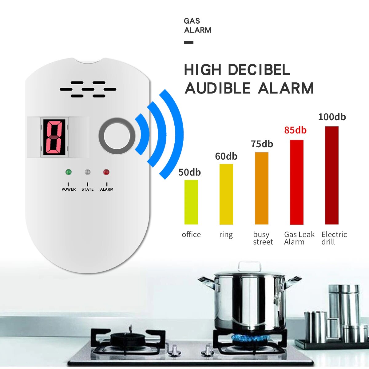 شاشة رقمية LED متطورة: تتيح لك مراقبة تركيز الغاز في الهواء فوراً وبشكل مباشر، مما يمنحك رؤية واضحة لحالة الأمان في مطبخك.