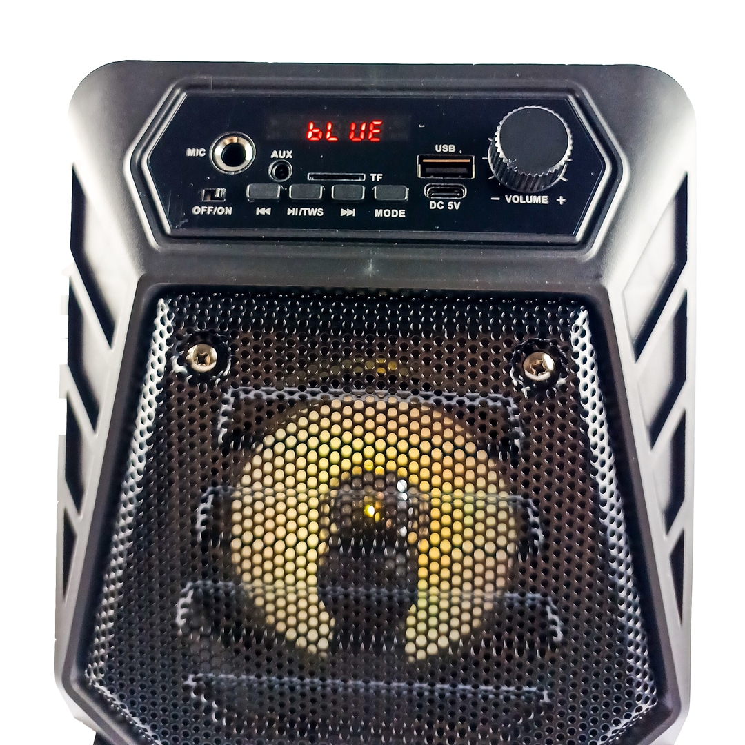 DESCRIPTION • CONNEXION BLUETOOTH • CARTE MÉMOIRE • AUXILIAIRE • USB • RADIO FM • LUMIÈRE LED • PUISSANCE 2200 WATT • BATERIE Haut-parleurs Bluetooth portable à flamme multicolore à LED de la marque DUNTH . Profitez d’une commodité musicale vibrante et élégante avec notre haut-parleur Bluetooth LED Flame Light doté de LED à effet de flamme changeant de couleur dans les doubles woofers ainsi que d’un bouton de contrôle du volume . Ce système Bluetooth vous divertira partout où vous irez grâce à ses capacités rechargeables et portables. Profitez de vos morceaux préférés via Bluetooth, entrée auxiliaire, USB, radio FM. L’entrée microphone rend le karaoké très simple et amusant – c’est aussi simple que de brancher et de partir. Les microphones peuvent également être branchés pour les discours et les annonces lors de votre prochaine cérémonie, fête ou célébration. Prend en charge la connexion Bluetooth et radio Il contient un port 3,5 mm et un port USB Contient des lumières LED pour la décoration Puissance : 2200 watts Contient une batterie rechargeable 2400 mAh Vous pouvez y installer un microphone pour les fêtes dimensions : 160*400*140 mm