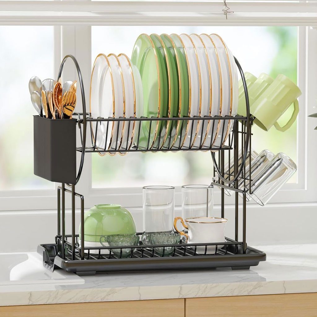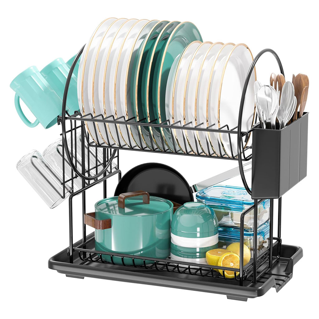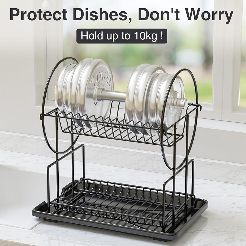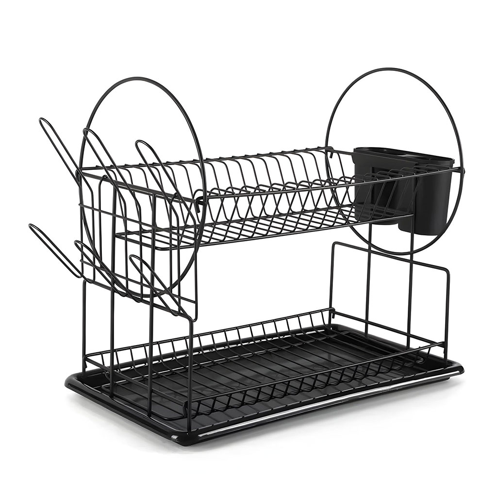 Egoutoire Vaisselle de Cuisine Noir à 2 Niveaux