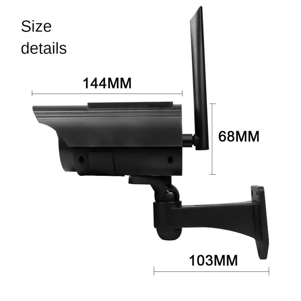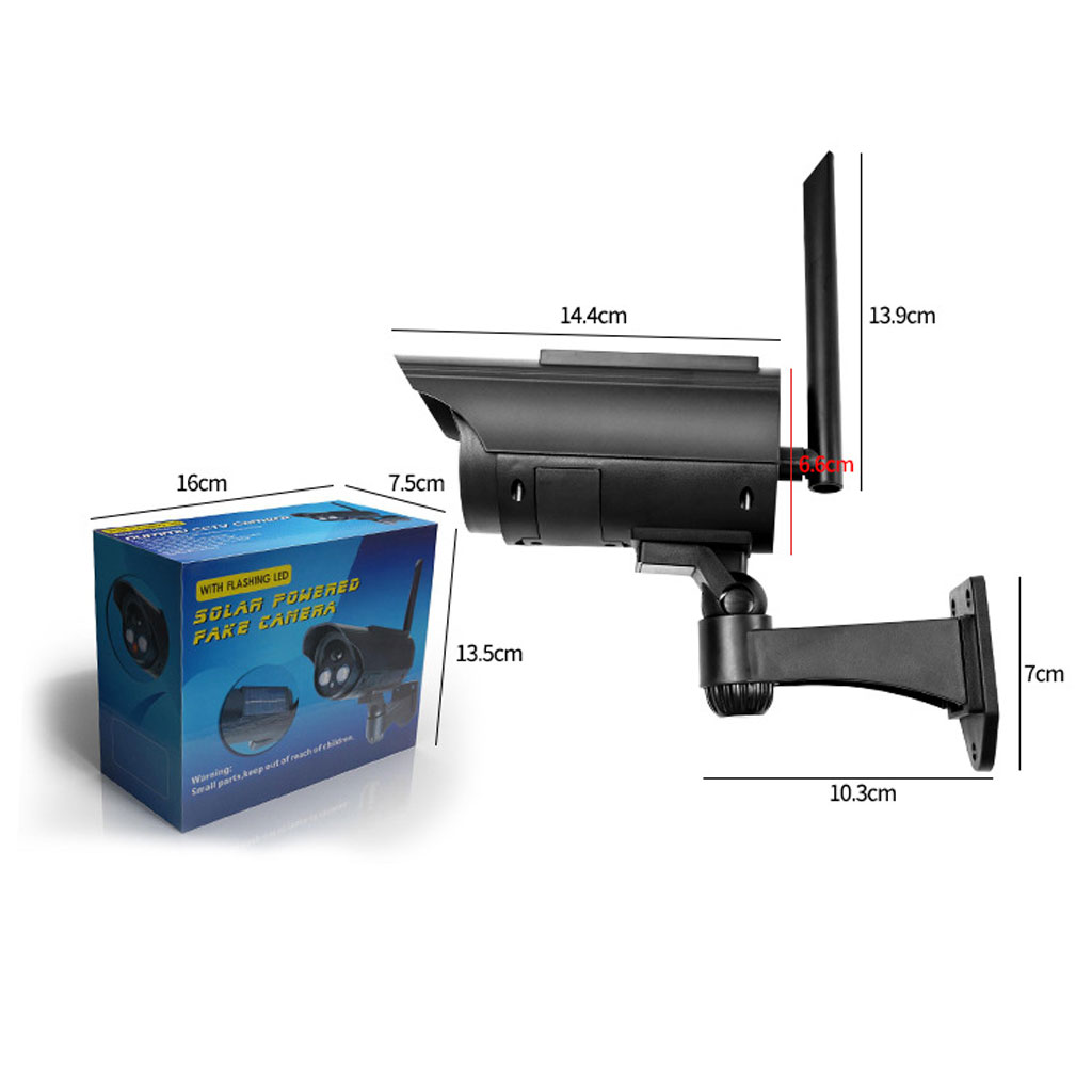 Ces caméras factices de sécurité sont fabriquées dans le même boîtier que les vraies caméras de vidéosurveillance, ce qui donne de l'authenticité à l'apparence de la vraie caméra, mais avec l'ajout de la LED uniquement. Ces caméras factices de sécurité sont de conception compacte et faciles à installer. Fabriquées dans un matériau de haute qualité et durable. Semblent fonctionner comme une véritable caméra de sécurité. Moyen efficace de dissuader les criminels. Facile et rapide à installer au mur à l'aide des vis fournies. Aucun câblage n'est requis. Attention : il s'agit d'une fausse caméra, d'une caméra de simulation Mode d'emploi : Installez la batterie rechargeable 14500, fixez la base avec des vis, puis enclenchez la caméra de simulation. Il y aura une lumière LED rouge [voyant de travail], qui clignote et clignote, de jour comme de nuit. Fonctionnalité: 1) Chargement par cycle solaire, aspect très réaliste 2) Il y aura un voyant LED rouge [voyant de travail], qui clignote et clignote, de jour comme de nuit. 3) Des caméras virtuelles très réalistes pour prévenir les crimes autour de votre maison, magasin, entrepôt, etc. 4) Installation facile et simple 5) Bon marché et pratique, une méthode économique pour prévenir efficacement le vol