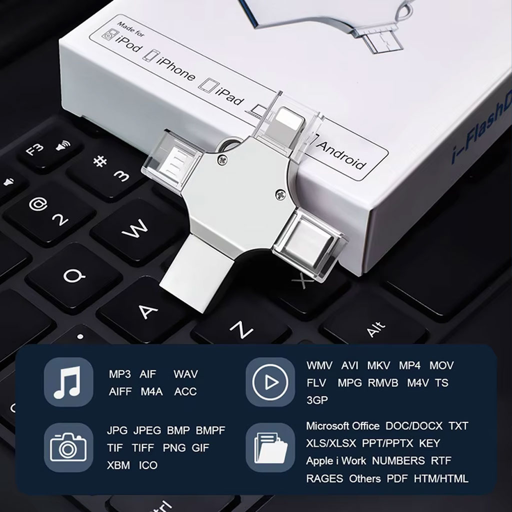 Clé USB 256GB i-Flash - 4 en 1 (Lightning + Micro + USB et Type-C Ports )