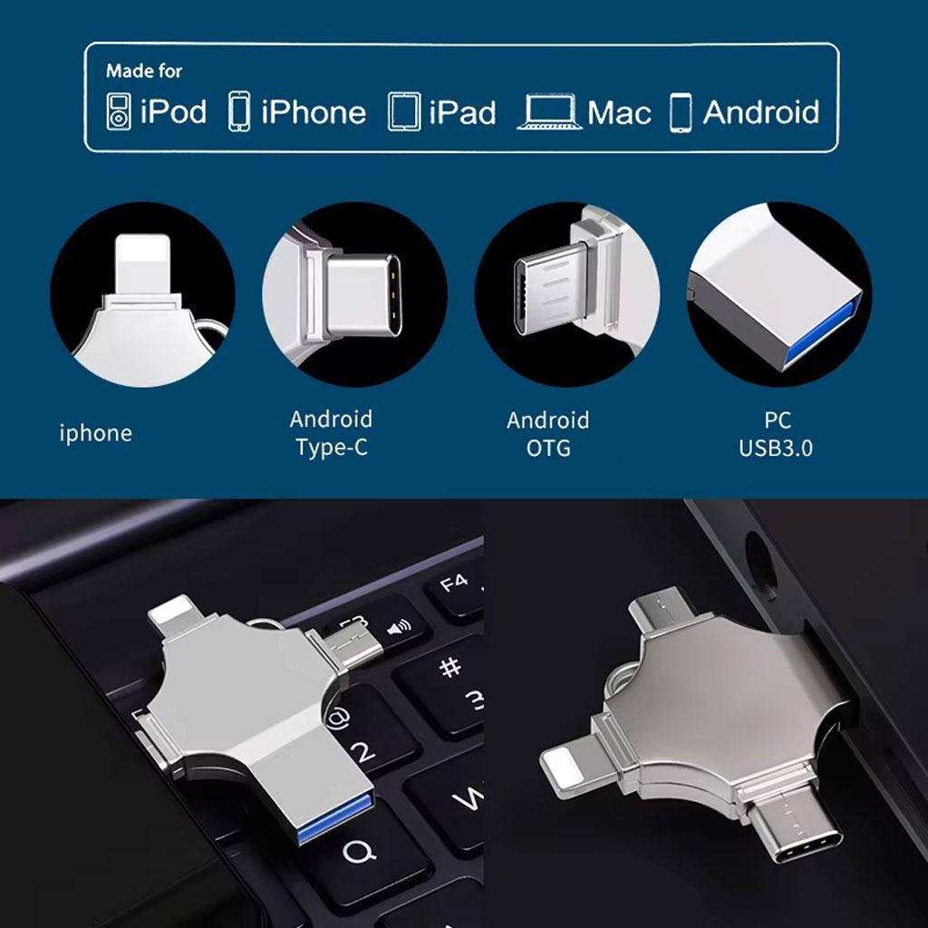 •102 تقييم•تم بيع +1KClé USB 256GB i-Flash - 4 en 1 (Lightning + Micro + USB et Type-C Ports )