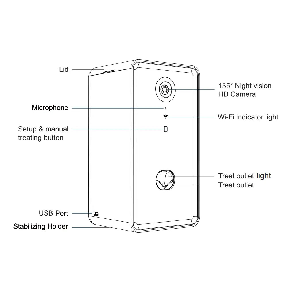 【Lancement de friandises à distance】 Il suffit de télécharger l'application « Smart Life » et d'un simple clic sur votre téléphone, votre animal sera récompensé par ses friandises préférées (taille de nourriture recommandée : 7-15 mm). De plus, il y a un bouton « Lancement manuel de friandises » sur la machine, appuyez une fois, une portion de friandises sera lancée • 【Résolution vidéo Full HD 1080P】La résolution vidéo Full HD 1080P, la vision nocturne automatique et la vue grand angle de 130° permettent de garder un œil clair sur votre animal de compagnie de jour comme de nuit. Tant que ce distributeur de friandises pour animaux de compagnie se connecte à Internet avec succès, vous pouvez utiliser les données cellulaires pour regarder des vidéos en direct et connaître l'état de votre animal lorsque vous n'êtes pas à proximité • 【Audio bidirectionnel】Ce distributeur de friandises pour animaux de compagnie permet de parler à vos animaux de compagnie pour soulager leur anxiété de séparation. Dotée d'une fonction de notification d'aboiement, cette caméra pour animaux de compagnie détectera les aboiements de votre chien et enverra une notification sur votre téléphone. Parlez-lui pour le calmer et vous assurer une tranquillité d'esprit lorsque vous êtes absent • 【Alerte de mouvement en temps réel】 Soyez averti de toute activité à la maison grâce à des alertes de mouvement en temps réel, déclenchées par des changements de mouvement, cette caméra pour animaux de compagnie vous aidera à garder un œil sur votre animal de compagnie pour vous assurer qu'il est en bon état et détecter tout comportement anormal dans votre maison • 【Installation rapide et facile】 Cette caméra pour animaux de compagnie prend en charge la connexion Bluetooth et est compatible avec le Wi-Fi 2,4 GHz et 5 GHz, garantissant une compatibilité plus large, une connexion plus rapide et plus stable. La connexion Bluetooth est un jeu d'enfant, il suffit d'activer le Bluetooth de votre téléphone et de télécharger l'application « Smart Life », vous pouvez facilement coupler cette caméra pour animaux de compagnie à votre téléphone
