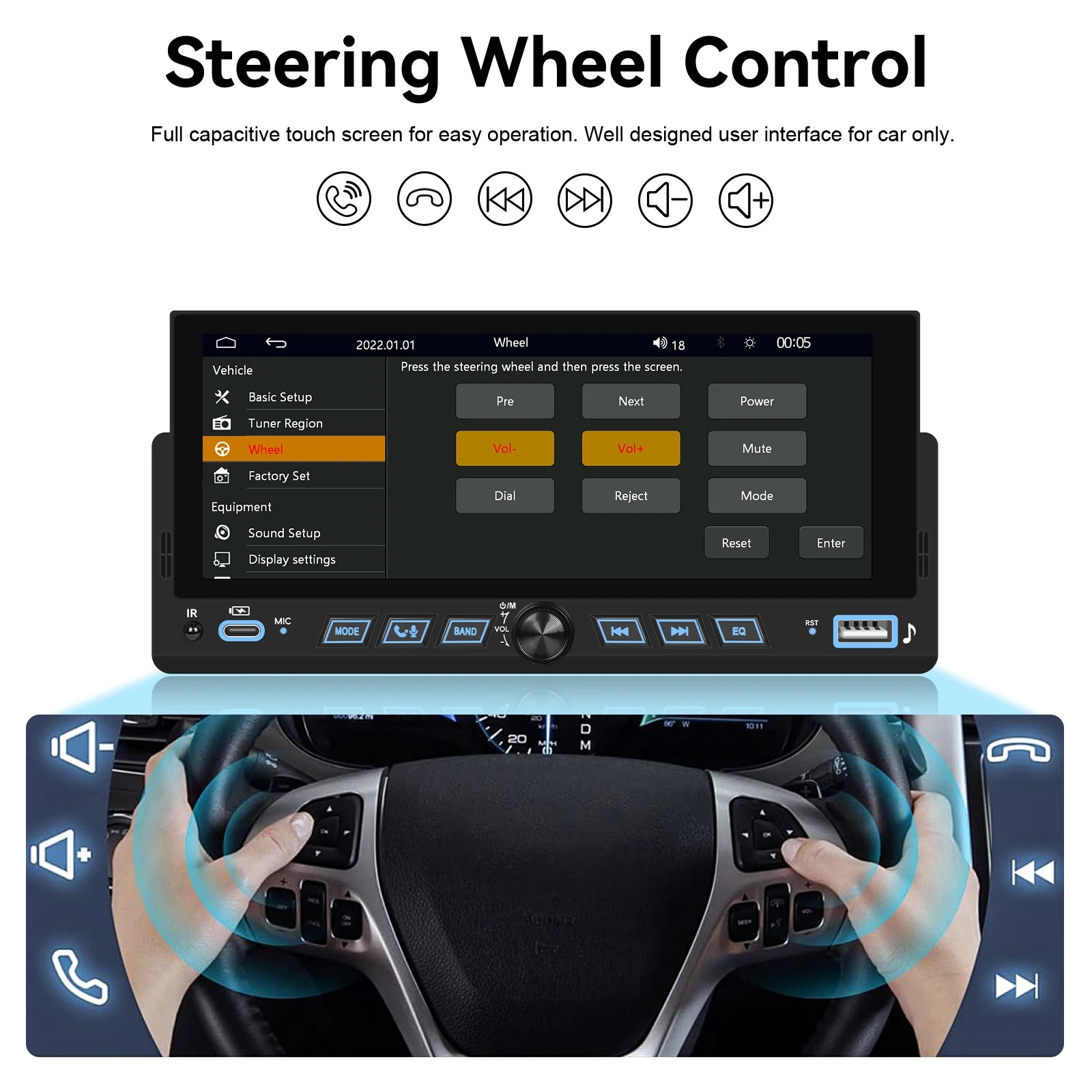 جاهز للأمان: يدعم مدخل كاميرا الرجوع للخلف (CVBS) مع ميكروفون مدمج لمكالمات واضحة، ويدعم الذاكرة الخارجية حتى 128 جيجابايت.