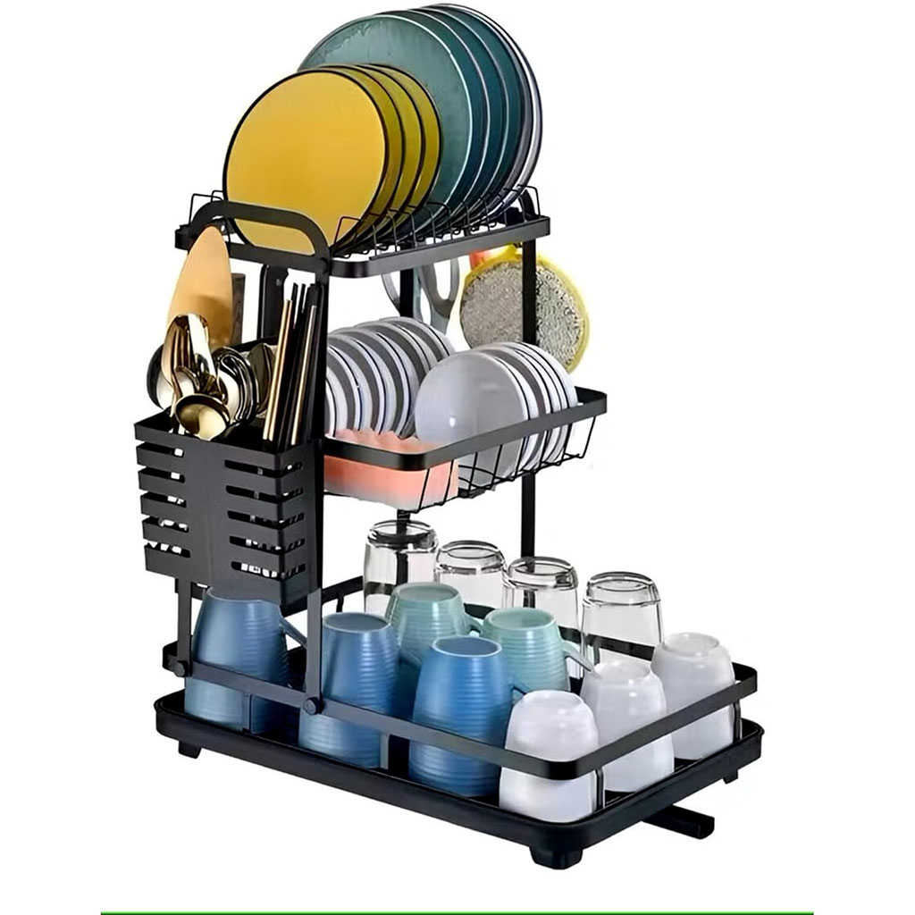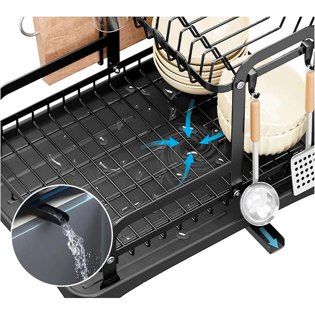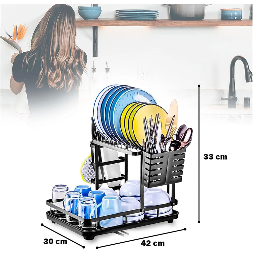 Égouttoir à vaisselle à 2 niveaux avec porte-ustensiles et bac à eau