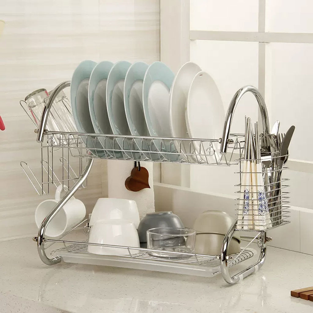 Égouttoir à Vaisselle à 2 Niveaux Couleur Argent