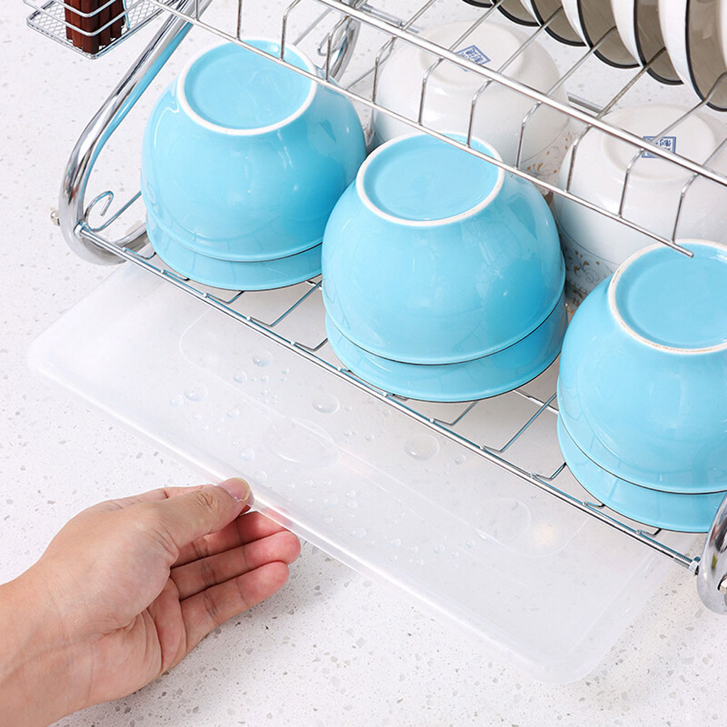 Gain de place : l'égouttoir à vaisselle offre plus d'espace sans coûter plus d'espace sur le plan de travail, ce qui le rend très pratique, facile à nettoyer et à entretenir. • Taille : l'égouttoir mesure 52cm de long x25cm de large x 38cm de haut, ce qui permet d'économiser beaucoup d'espace, en particulier pour les petites cuisines. • Dans le cas où les deux couverts sont mouillés, deux bacs à eau recueillent l'eau qui s'écoule des couverts. • Le design plat de la couche inférieure peut accueillir différents verres et couverts, tels que des plats, des tasses, des bols et plus encore.