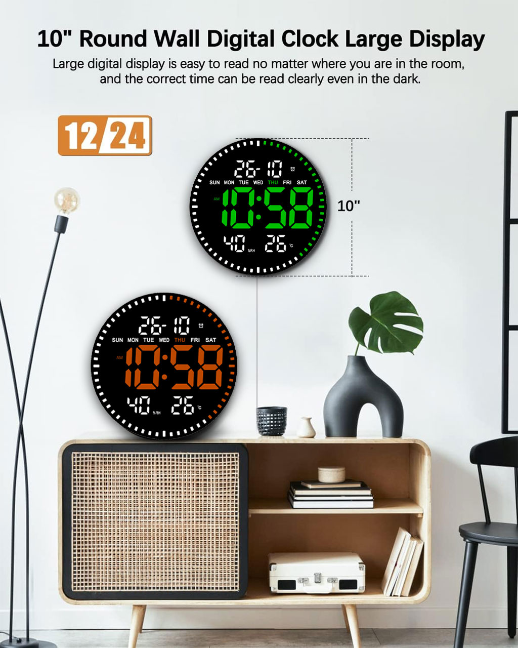L'horloge numérique LED est une option moderne et fonctionnelle pour n'importe quel espace. • Attrayant pour n’importe quelle maison ou environnement de travail. • Couleur structure: Noir • Télécommande incluse. • Réveil. • 30 jours pour les retours dus à des défauts d’usine. Le produit doit être dans son état d'origine et scellé. Nous n'acceptons pas les retours de produits ouverts, utilisés ou endommagés. Couleurs : rouge clair/vert/bleu/blanc. • Couleur structure: Noir. • Type : horloge murale numérique circulaire. • Dimensions : 28,5 cm x 28,5 cm x 3 cm