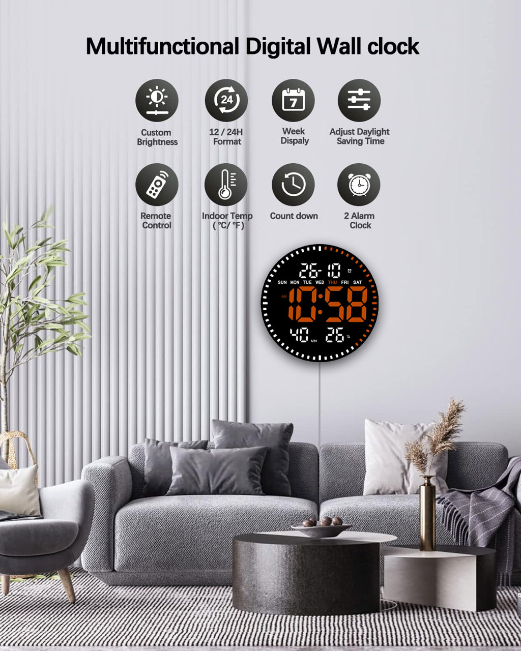 •416 تقييم•تم بيع +1KHorloge murale numérique LED avec Télécommande JH-2560