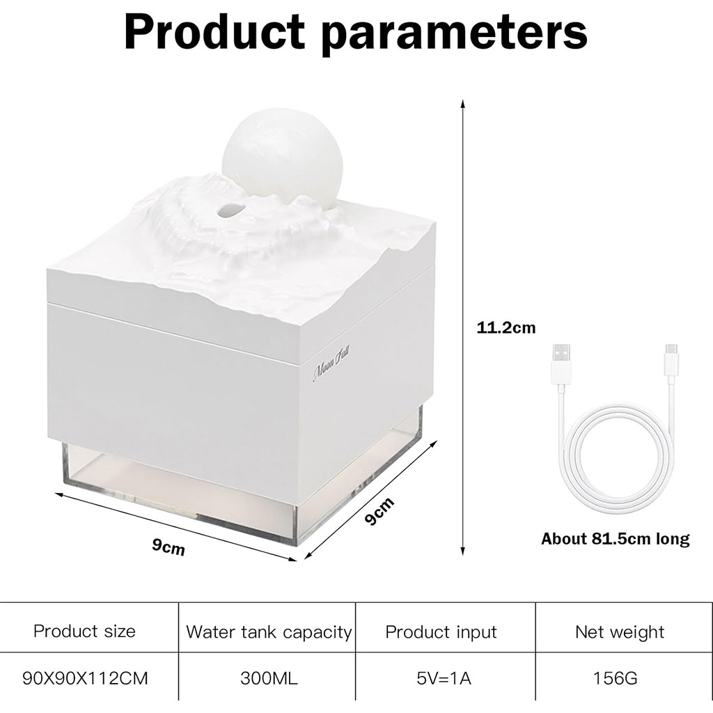 Humidificateur Cube 300 ml avec Veilleuse de Lune Colorée - معطر جو في الغرفة