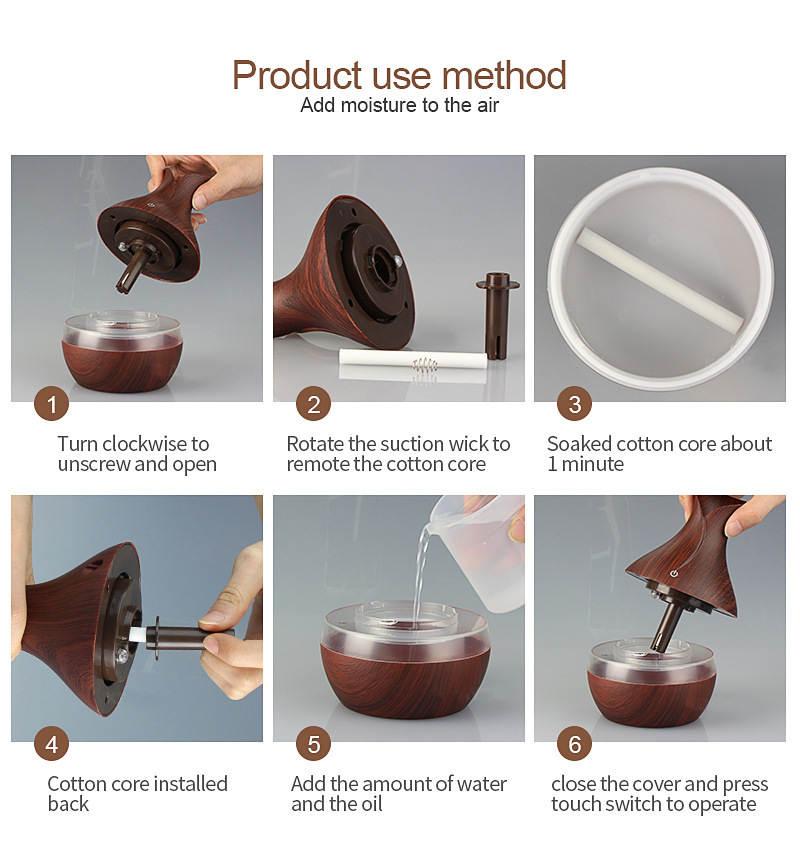 information produit: • Produit: humidificateur portable USB • Capacité d’eau: 300 ml • Taille: 110*110*145mm • Couleur: Grain de bois foncé, • Puissance: 2W • Tension: 5V • Puissance de pulvérisation: 50 ml/h Comment l’utiliser: • 1. Ouvrez le couvercle supérieur dans le sens antihoraire • 2. Ajouter de l’eau claire • 3. Connectez l’alimentation USB • 4. Interrupteur à simple clic, ouvrez le mode de pulvérisation. Les produits comprennent: • 1. Humidificateur * 1 • 2. Ligne de données USB * 1 • 3. Instructions d’utilisation * 1