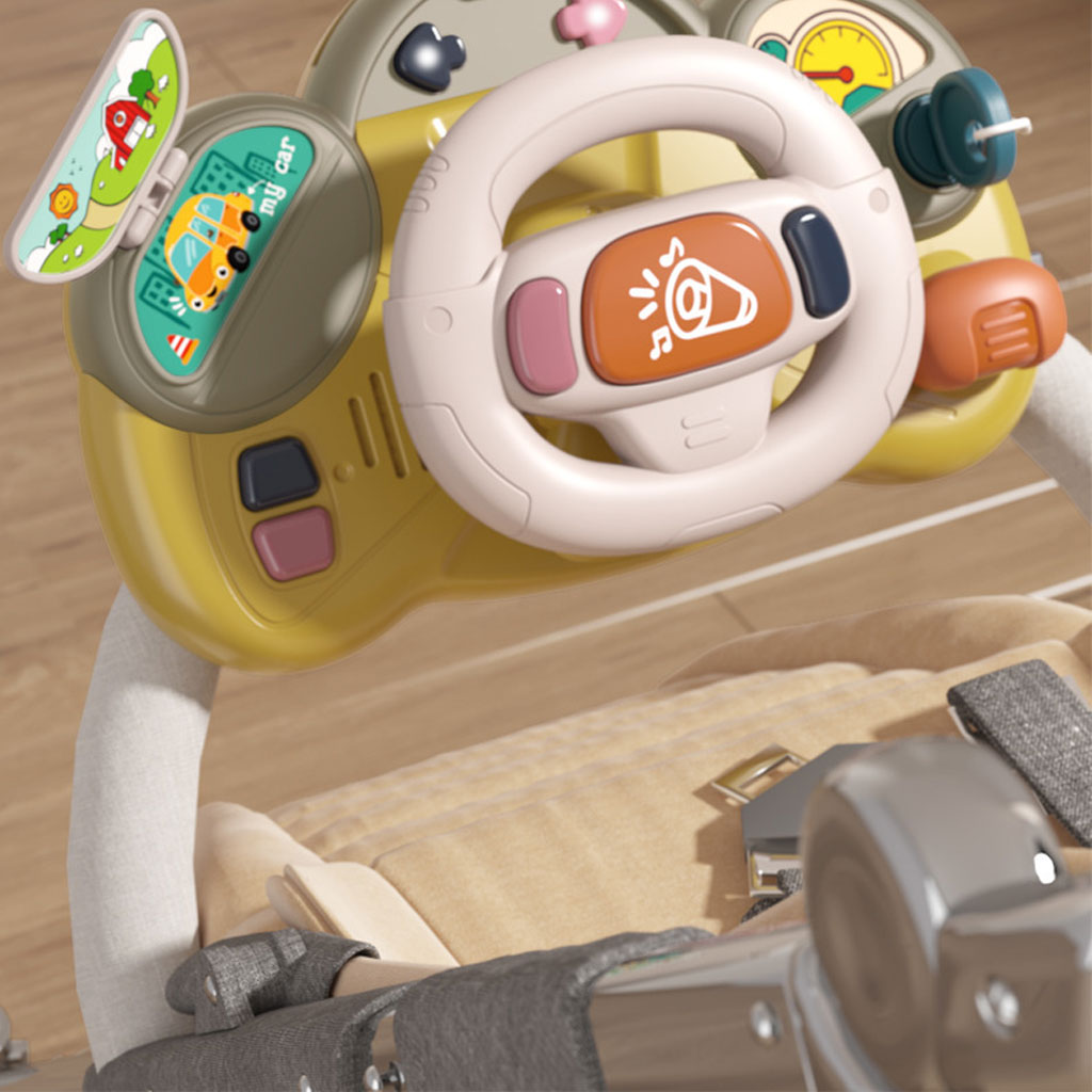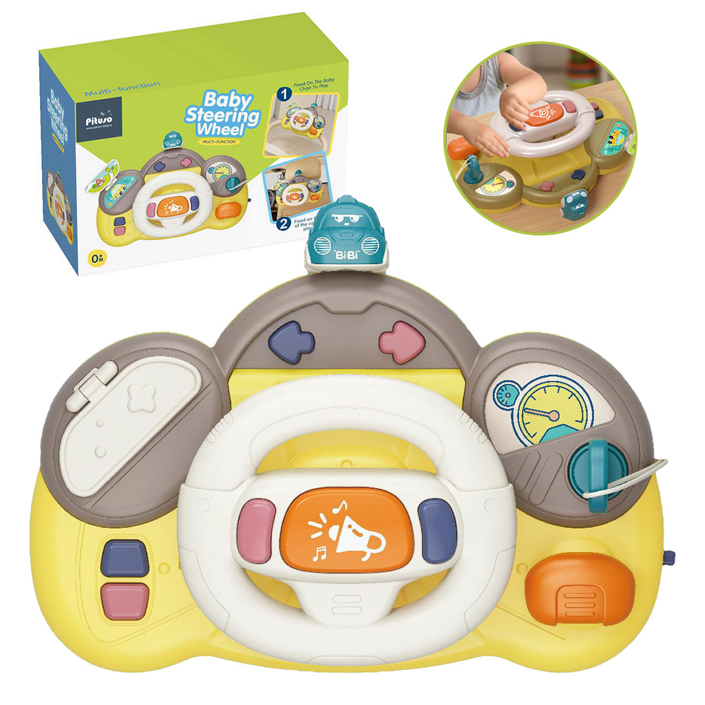 Le jouet éducatif Young Driver séduira tous les petits conducteurs. Le jouet coloré est parfait pour se divertir, voyager en voiture ou même transporter votre propre poussette. Pour la fixation, deux sangles sont utilisées, qui sont incluses dans le kit. Le jouet est entièrement fabriqué en plastique, dans des couleurs très attrayantes, qui apporteront également beaucoup de plaisir. Particularités : - Il y a des boutons dans le volant pour allumer les clignotants droit et gauche, lors de cette opération vous entendrez un clignotement et la lumière s'allumera. - Il y a un klaxon dans le volant. - Levier de changement de vitesse. - Si vous insérez la clé dans le contact, vous pouvez entendre le bruit du démarrage de la voiture. - Lorsque vous tournez le volant, la voiture sur le panneau avant se déplace ensemble. - Les boutons sur la droite activent des mélodies, des sons et des lumières amusants - A droite il y a un rétroviseur imitation. Le jouet développe les capacités cognitives : à l'aide de boutons, l'enfant découvre les relations de cause à effet. Développe l'audition, stimule la vision et attire l'attention des enfants. Dimensions du jouet : 28,5*15*7 cm Dimensions du colis : 31*20*7,5 cm