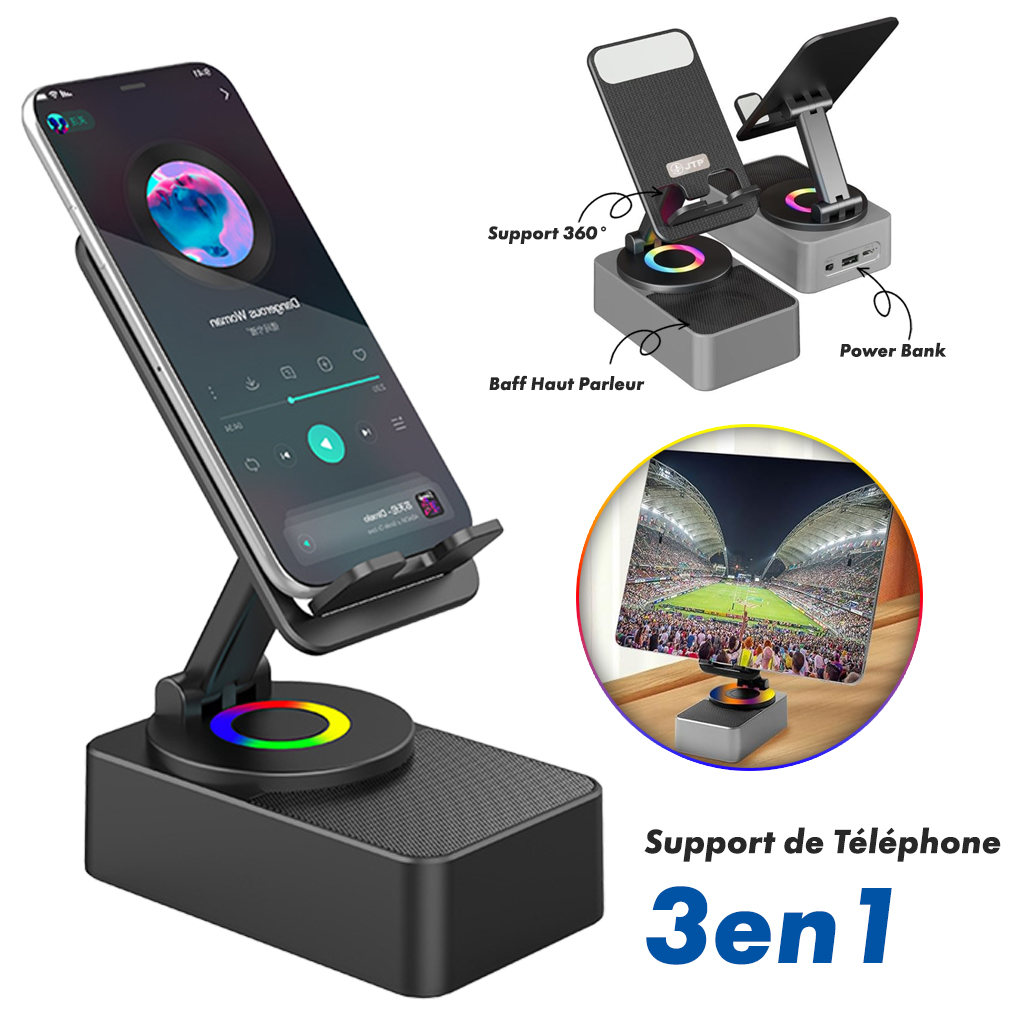 Support de téléphone portable 3en1 multifonctionnel avec haut-parleur Bluetooth, Power Bank