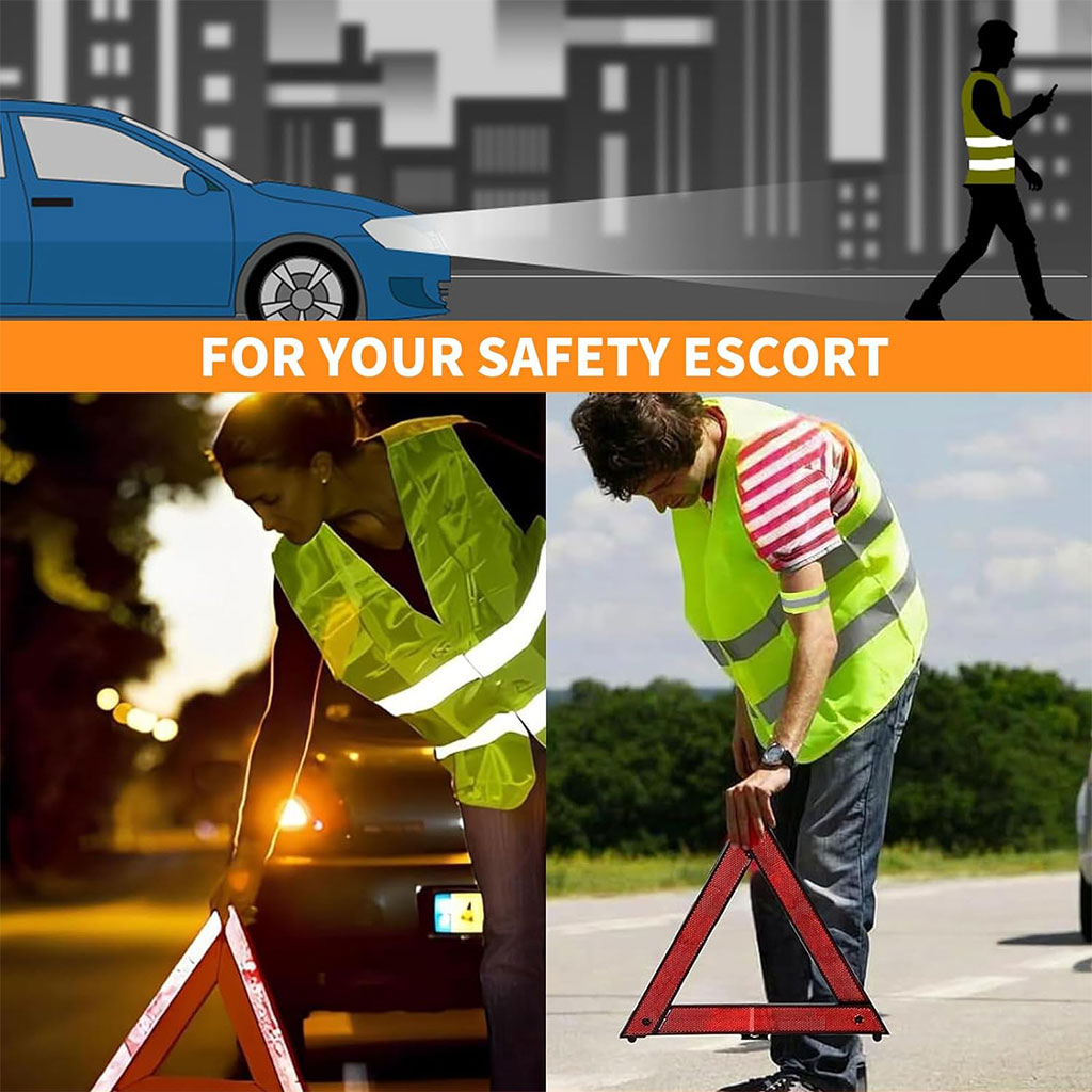 رؤية فائقة وبعيدة المدى: تم تصميم السترة والمثلث بمواد عاكسة للضوء عالية الجودة، مما يجعلك مرئياً بوضوح في الظلام، الضباب، أو تحت المطر الغزير.