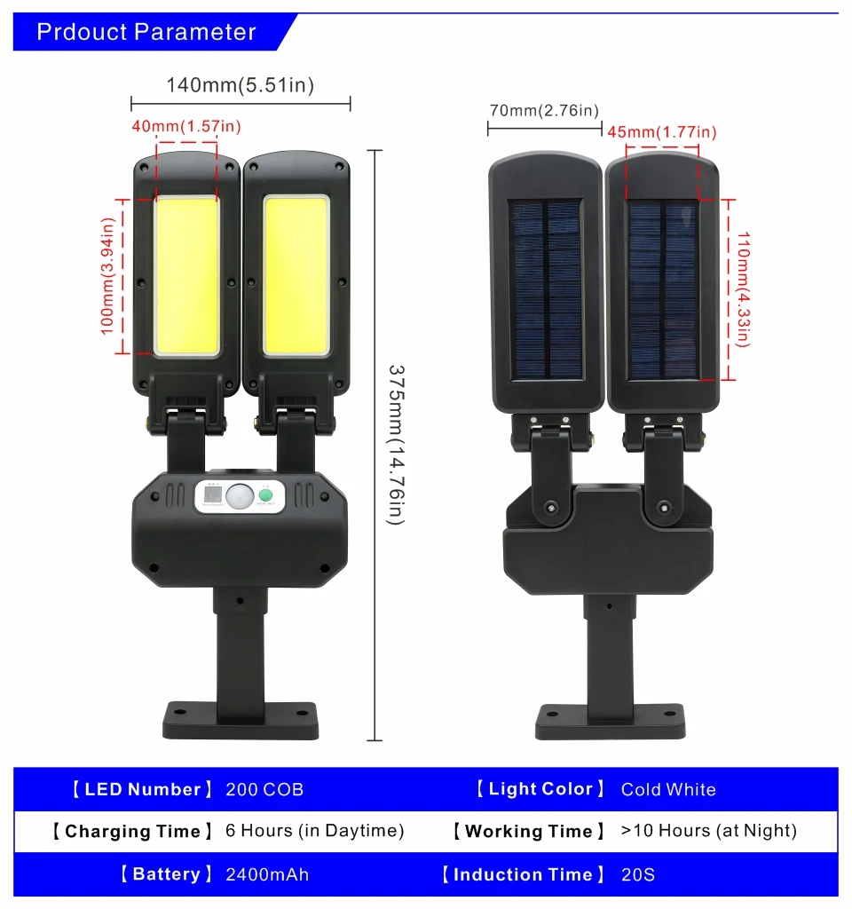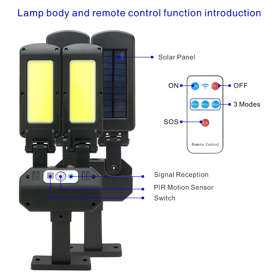 Lampadaires solaires d'extérieur 200 LED avec télécommande et détecteur de mouvement - مصباح بالطاقة الشمسية