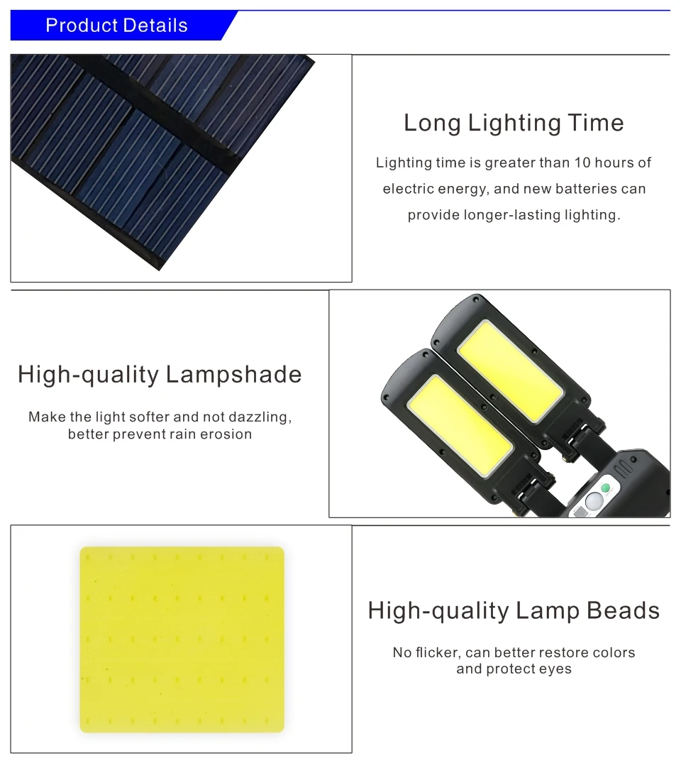 【Lampadaire super lumineux】 Les lampes solaires à mouvement extérieur sont fabriquées en ABS + PC à fort impact, équipées de 200 perles de lampe LED, à faible consommation d'énergie. Les appliques murales peuvent fournir un éclairage ultra-haute luminosité pour une grande surface. • 【3 modes d'éclairage et télécommande】Mode 1 : allume automatiquement la haute luminosité lorsqu'un mouvement est détecté et devient une luminosité moyenne après 20 secondes.Mode 2 : allume automatiquement la haute luminosité lorsqu'un mouvement est détecté et s'éteint après 20 secondes.Mode 3 : éclairage constant dans l'obscurité.Vous pouvez également utiliser la télécommande pour régler le mode de votre choix. • 【Tête d'éclairage réglable et éclairage grand angle】Les lampes solaires de stationnement peuvent être tournées de haut en bas à 90 °, à gauche et à droite à 180 °, une lumière peut être utilisée comme deux. Les appliques murales de sécurité peuvent être sensibles aux objets se déplaçant à moins de 240 °. • 【Panneaux solaires étanches et efficaces IP65】Le lampadaire solaire a des performances d'étanchéité IP65 et peut être utilisé dans divers environnements extérieurs et conditions météorologiques extrêmes. Le lampadaire LED utilise des panneaux solaires en polysilicium, se chargeant pendant 6 à 8 heures et peut durer 8 à 10 heures. • 【Service de vente et installation】Si vous avez des problèmes, veuillez nous contacter. Nous le traiterons dans les 24 heures. Les lampadaires sans fil peuvent être facilement installés et peuvent être montés directement sur le mur et le poteau avec les vis fournies.