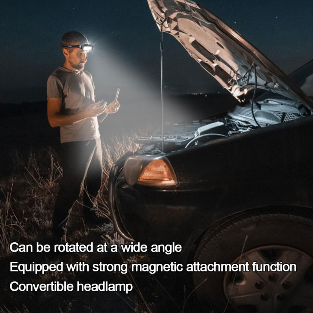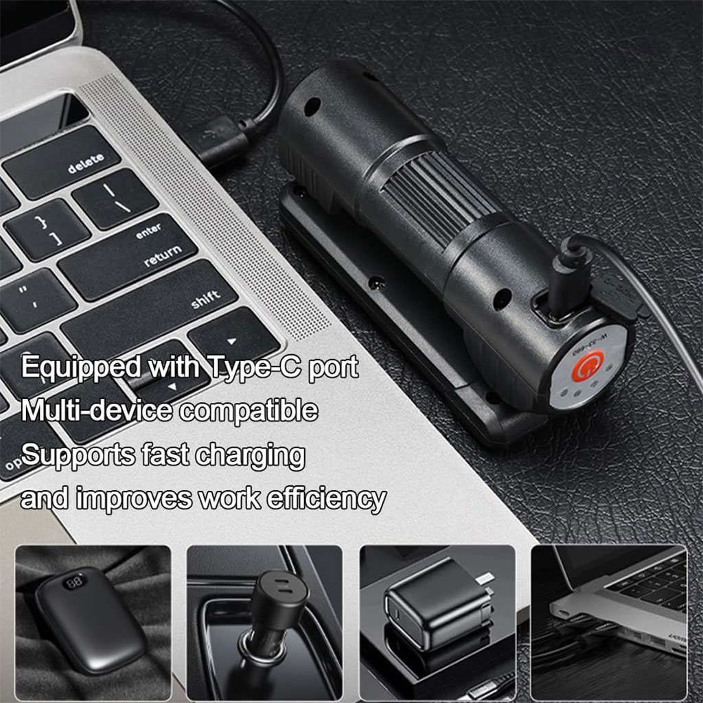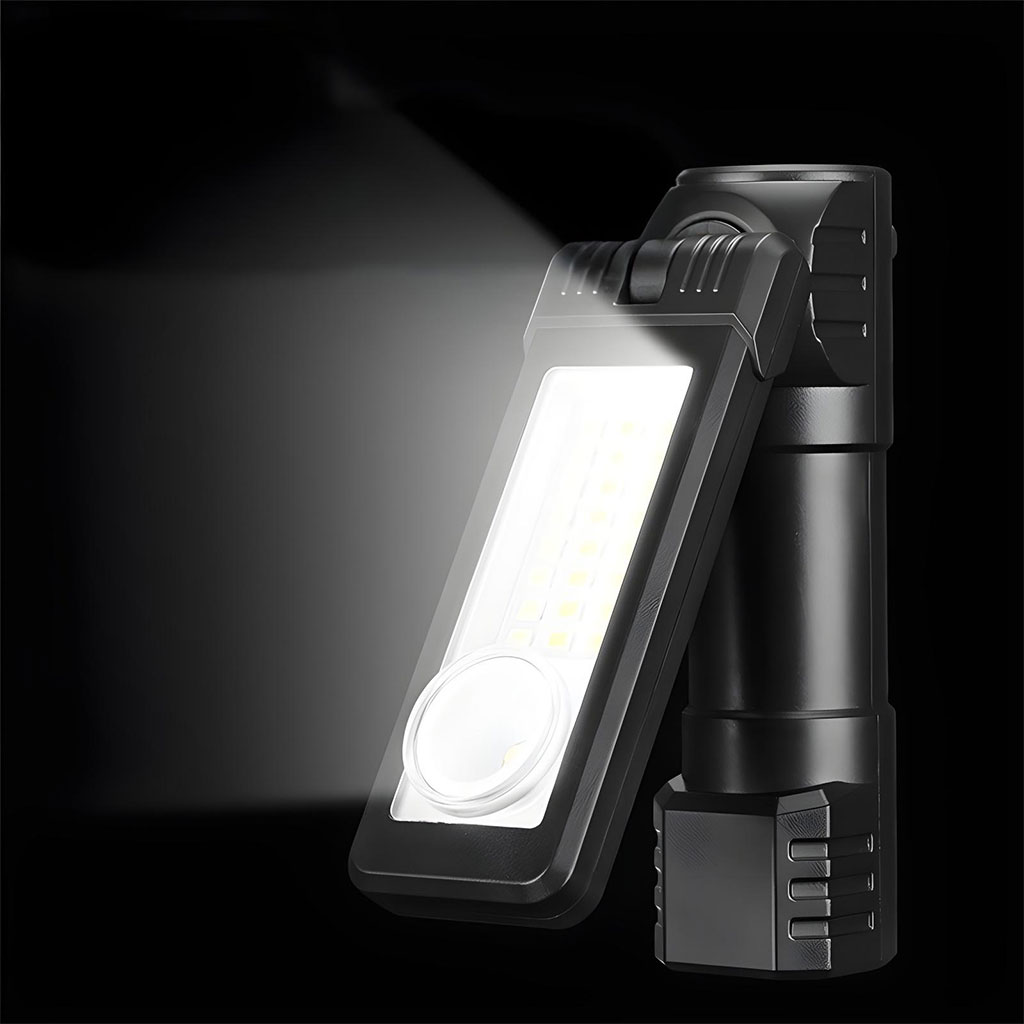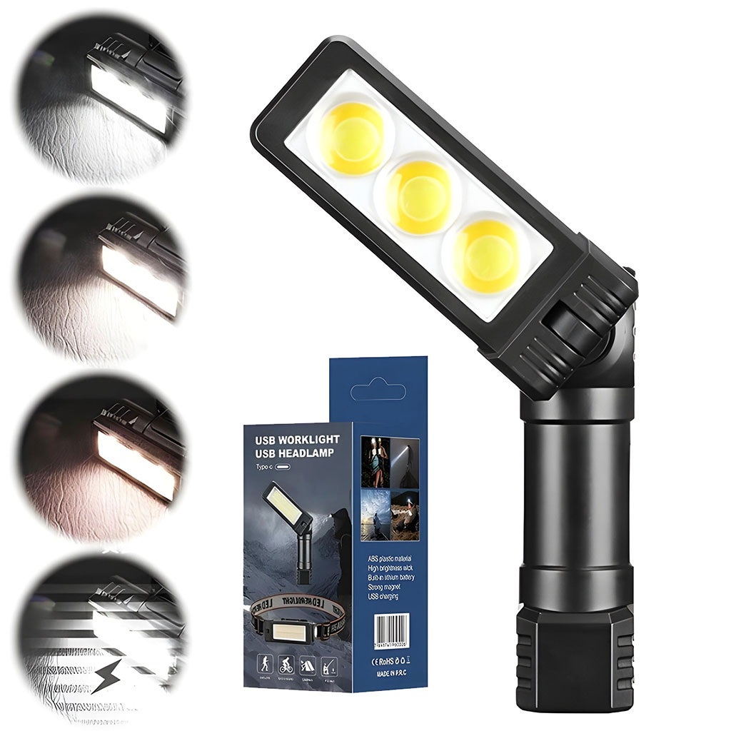 Chargement USB-C rapide : le temps presse et notre magnétique est construit avec un port de charge rapide de type C pour garantir un temps d'arrêt minimal. • Double sources : équipée d'options de projecteur et de réflecteur, notre lampe de poche LED portable est un compagnon polyvalent pour tout travail. Offre un concentré pour un travail détaillé, • Durabilité aux intempéries : conçue pour résister aux éléments, notre lampe LED présente un indice d'étanchéité adapté à une utilisation en extérieur. Que vous soyez confronté à des conditions pluvieuses, • Éclairage polyvalent : cette LED COB est conçue pour une flexibilité maximale et dispose d'une capacité de rotation multi-angle qui fournit un support spécifique pour les tâches complexes. • Stabilité magnétique : avec une base magnétique intégrée, cette lampe d'inspection magnétique adhère solidement à toute surface ferreuse. Sa rotation grand angle combinée à une poignée magnétique vous permet de le placer sur une variété de surfaces sans souci,
