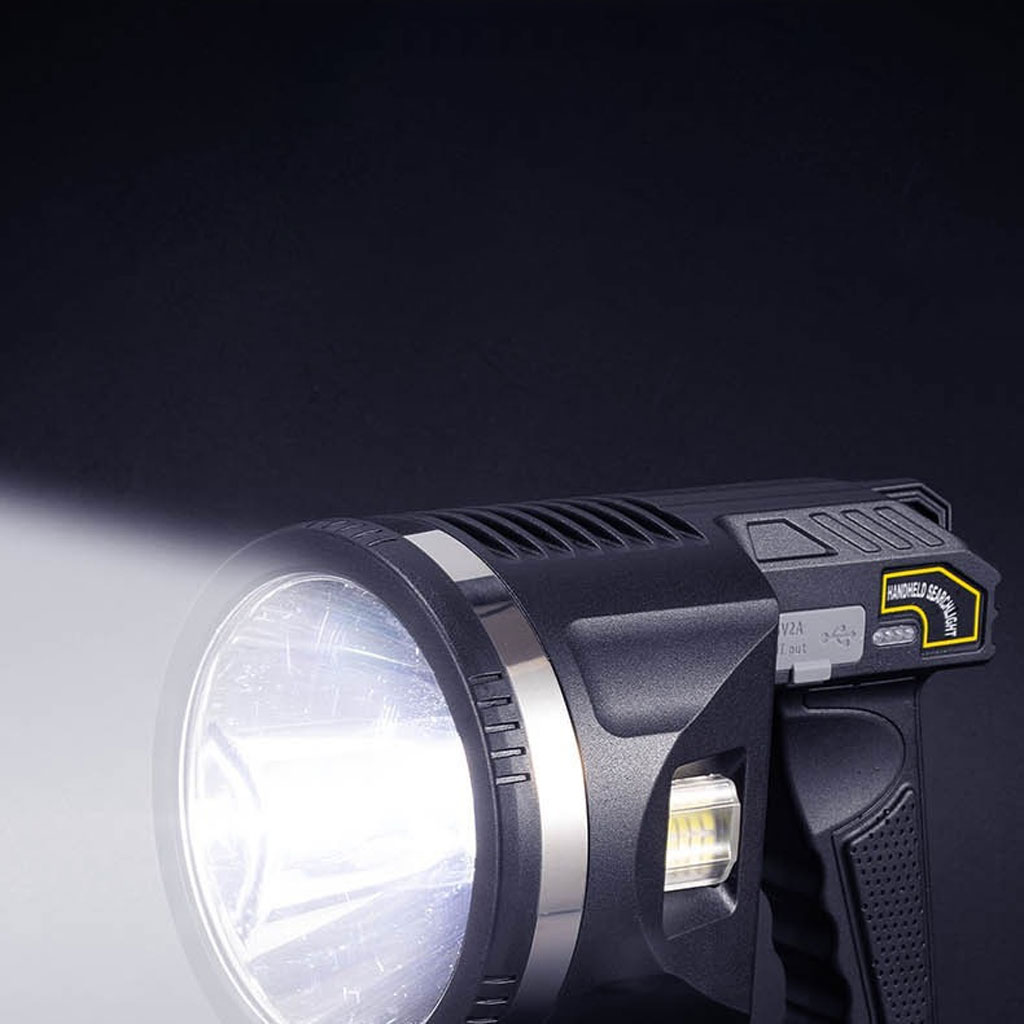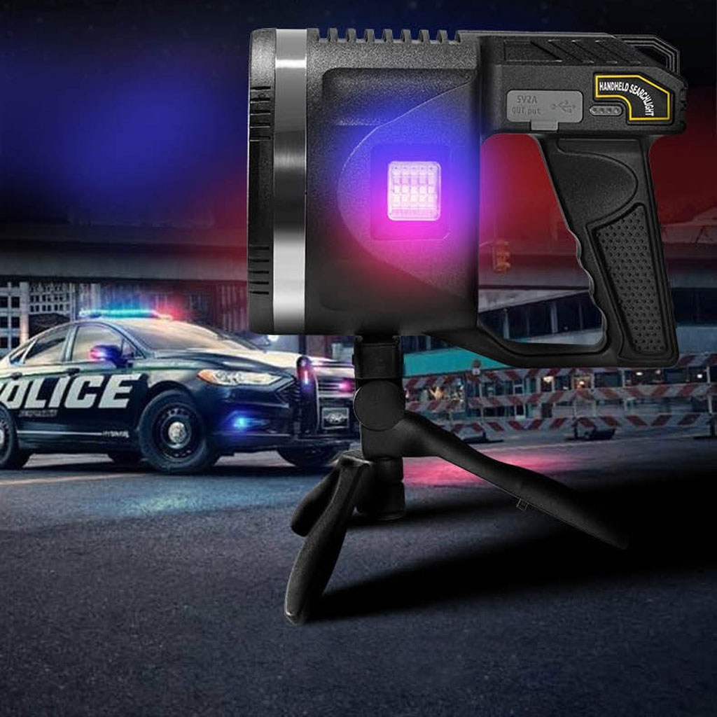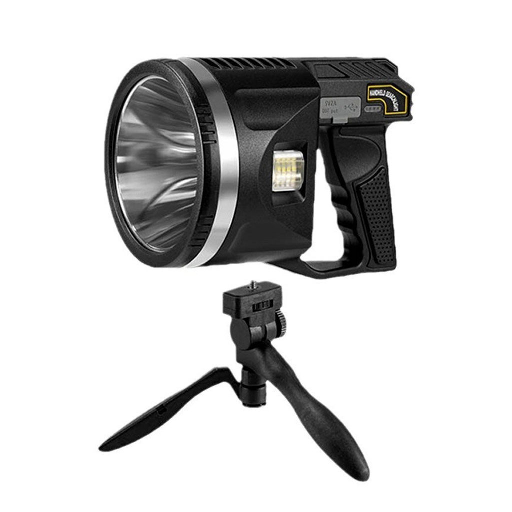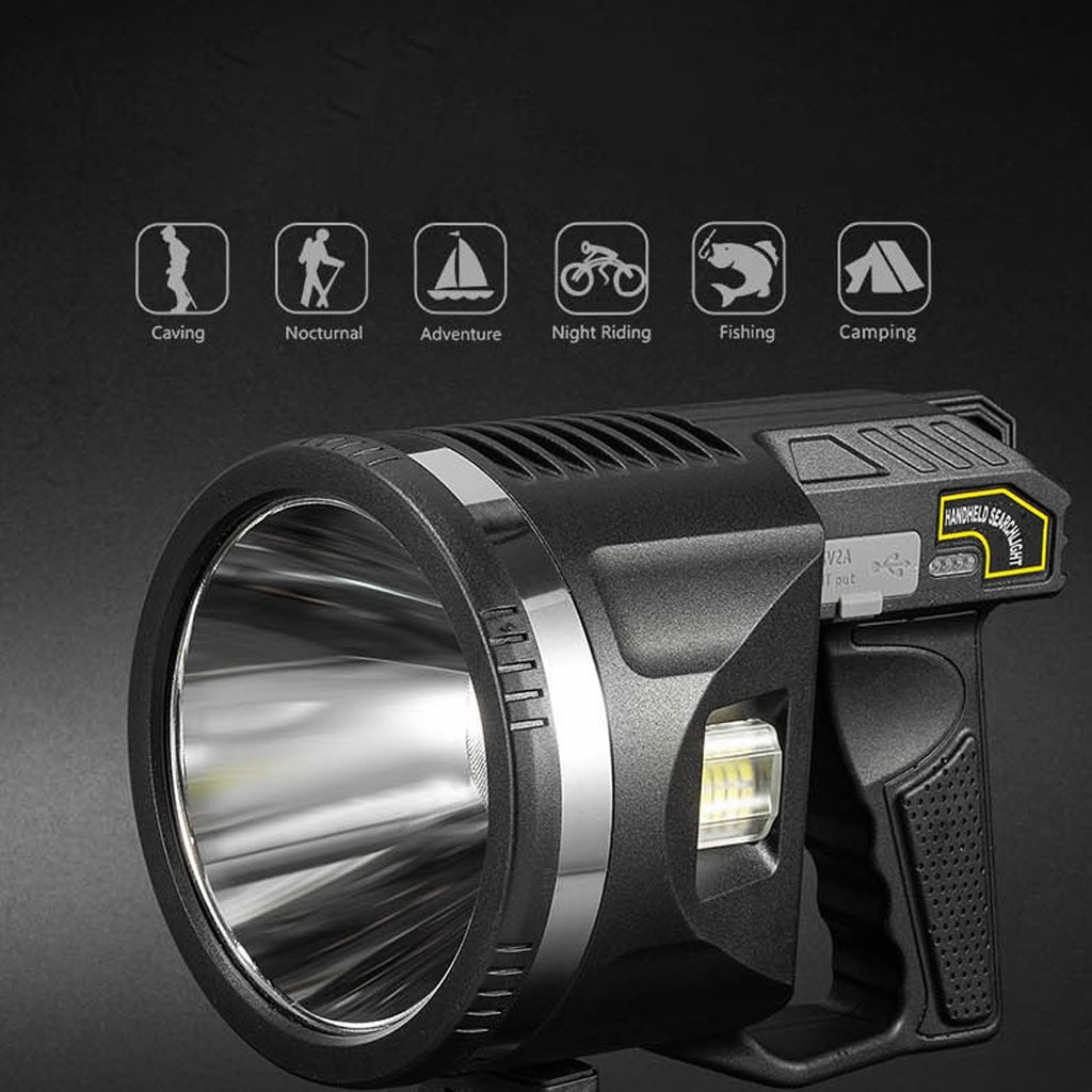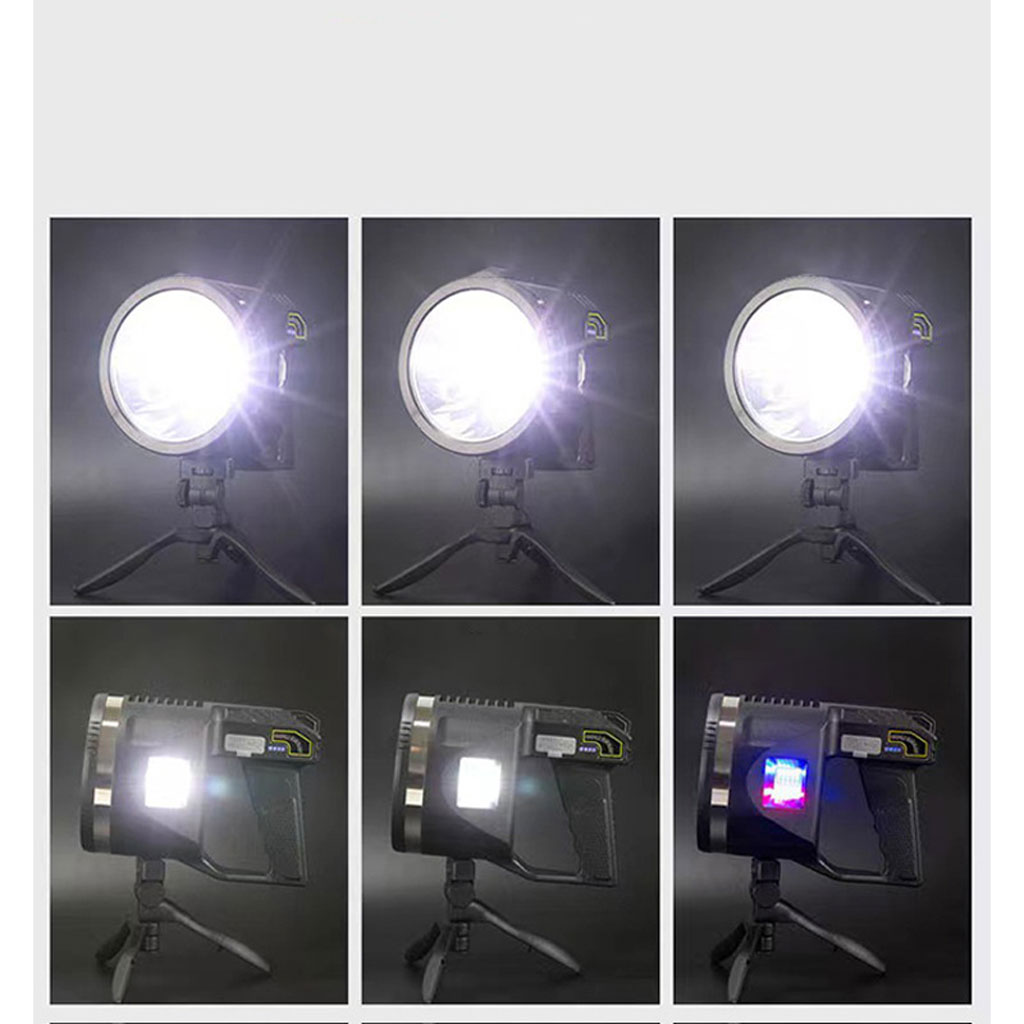 Haute luminosité et durabilité : la longueur d'éclairage de la lampe de poche LED est d'environ 10 terrains de football (1000 mètres). Luminosité jusqu'à 100 000 lumens. Le spot adopte une structure entièrement fermée, qui est anti-explosion, anti-poussière et résistante aux chocs. C'est l'outil d'éclairage parfait pour la chasse, la randonnée, le camping, la voile, l'astronomie ou les urgences en cas de panne de courant. Vous pouvez le définir comme un long projecteur pour faciliter la recherche de cibles. • Projecteur multifonction pratique : spot super lumineux équipé de perles de lampe P90 de 50 W 100 000 lumens. La lumière principale de la lampe de poche dispose de trois modes : haute lumière, faible lumière et stroboscopique, et est équipée de lentilles filtrantes bleues amovibles, jaunes et rouges. Ils offrent une meilleure vision nocturne et vous pouvez changer différentes sources de lumière selon vos besoins. • Lumière douce latérale : la lumière latérale utilise 35 perles de lampe COB. Il dispose de 3 modes de luminosité : haute lumière, faible lumière et lumières d'avertissement rouges et bleues. Notre lampe torche douce est votre meilleur choix lorsque vous travaillez, lisez ou campez. Les lumières d'avertissement clignotantes rouges et bleues peuvent être utilisées comme lumières stroboscopiques d'avertissement de sécurité à la maison. • Alimentation d'urgence : L'indicateur de batterie LED à côté du feu latéral permet de vérifier facilement si la batterie est suffisante avant utilisation. Le port USB peut être utilisé comme une source d'alimentation d'urgence quotidienne pour votre smartphone, vous aidant lors de vos voyages en plein air.