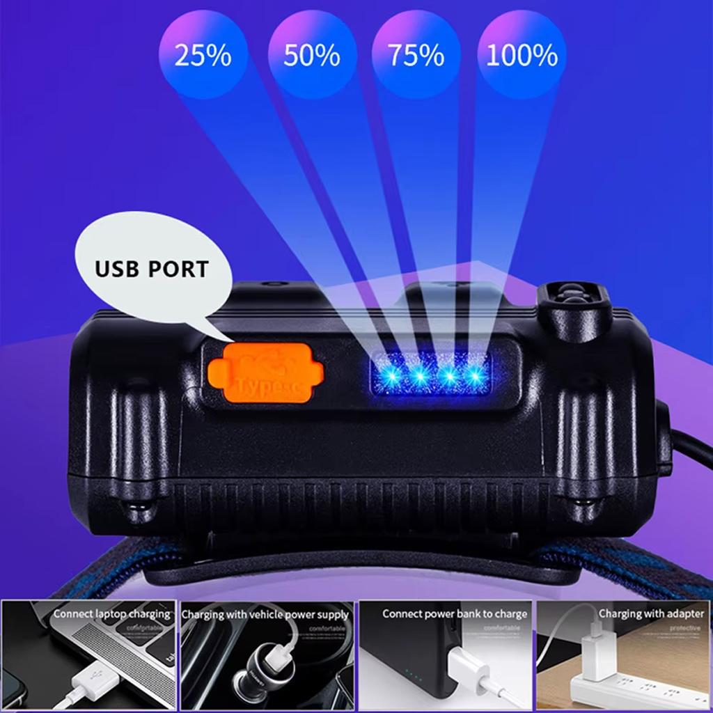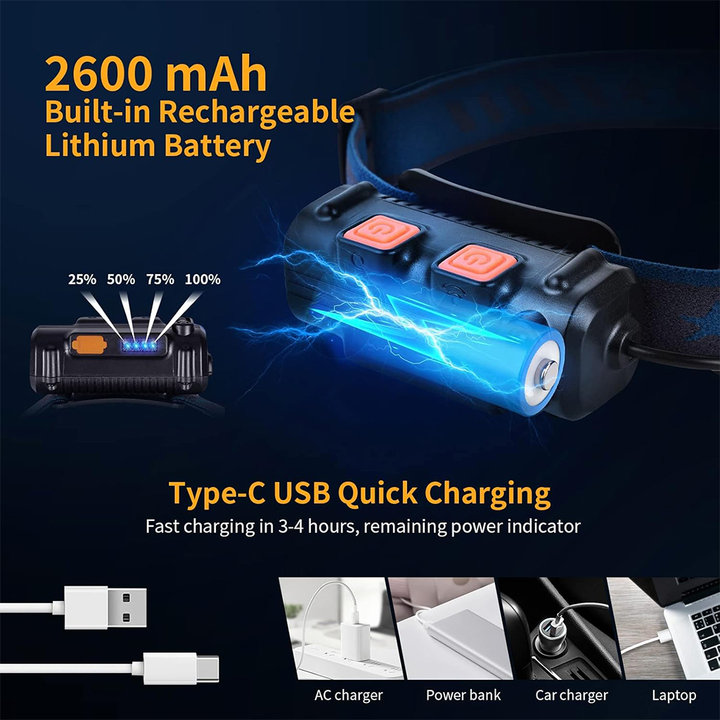 Lampe Frontale Rechargeable 2600mAh avec Capteur Mouvement