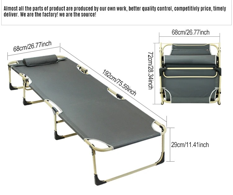 Capacité de poids : 150-180 kg • Poids: 5,3 kg • Taille du produit: 192*68*29CM • Cadre ; Alliage d'aluminium • Tissu : tissu Oxford 600D.