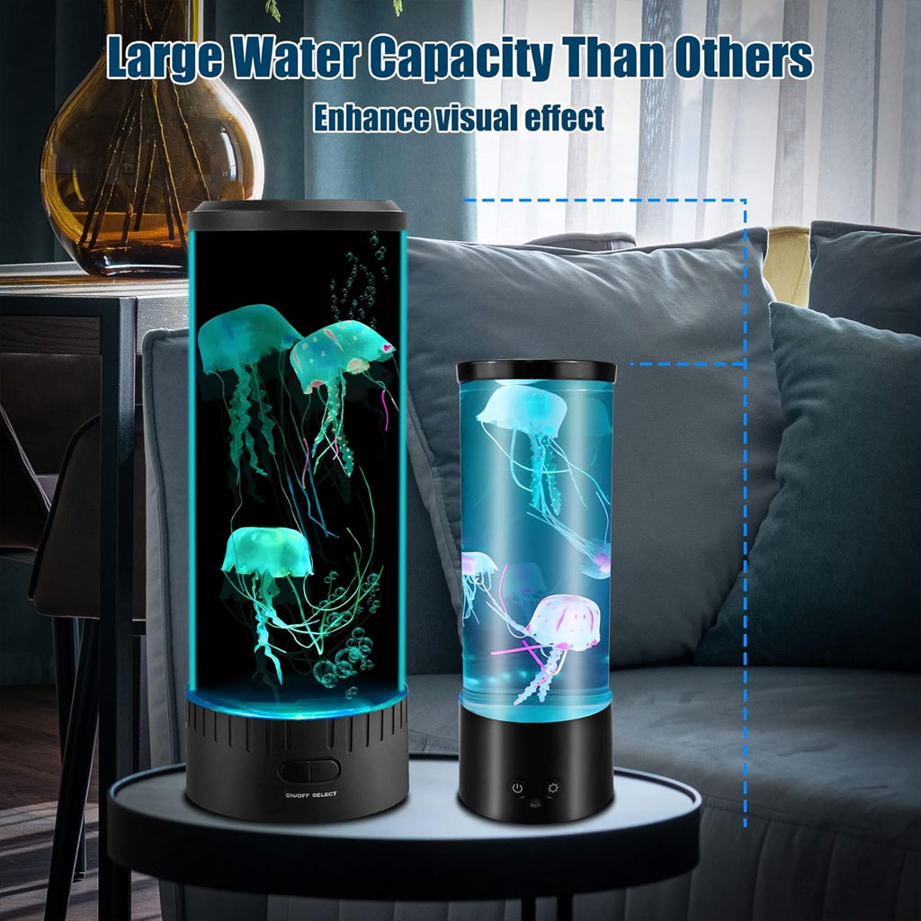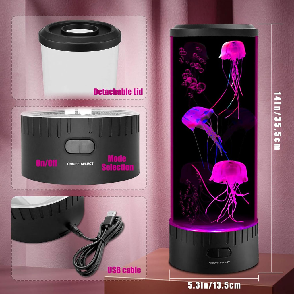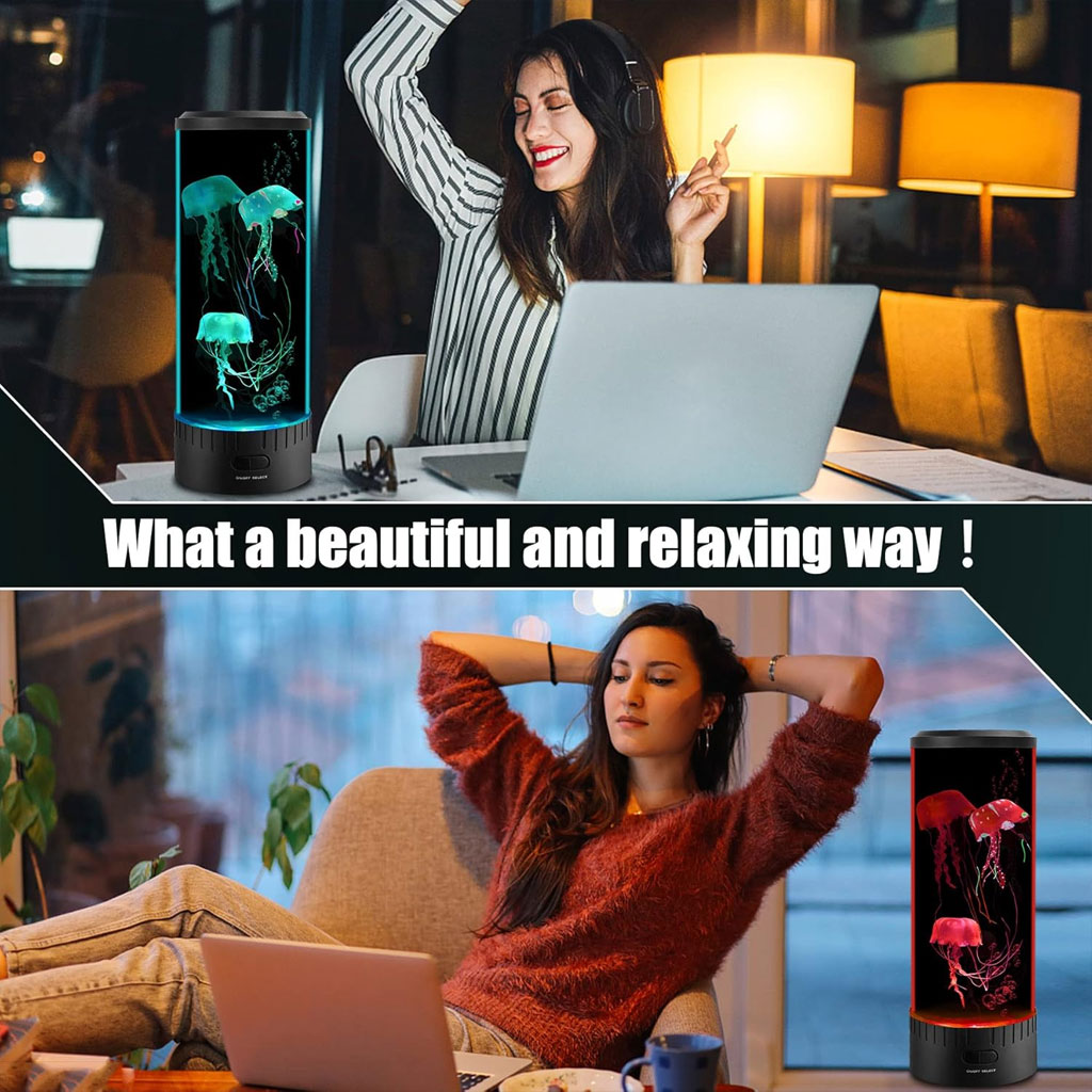 La lumière de la jellyfish est très élégante et belle.Les méduses sont réalistes et même des vrilles flottent derrière eux, créant un effet réaliste et vous fascinant.Les lumières LED à changement de couleur ajoutent un charme séduisant à n'importe quelle maison, bureau ou chambre à coucher. • Le meilleur cadeau La lumière de la Jellyfish Sight est le meilleur cadeau pour les enfants, les mamans, les pères, les épouses et les maris.Tout le monde aimera ce cadeau.En tant que lumière de nuit de décoration de la famille, il peut réduire le stress • La lumière de la jellyfish est entraînée par un moteur à faible bruit et silencieux, qui ne vous dérangera pas.Il a sept lumières de couleur qui changent de manière aléatoire.Vous pouvez également appuyer sur le bouton "Lumière" pour réparer la couleur et choisir la couleur que vous aimez. • La lumière de la jelly de mer peut vous aider à vous détendre et à soulager la tension.Cette lumière de mobilité apaisante des méduses constitue un effet calmant pour les enfants et les adultes, tout en offrant un point de vue ou une distraction agréable et charmant.