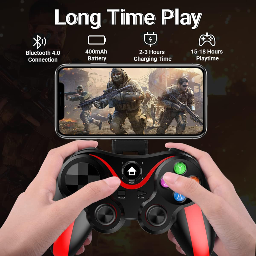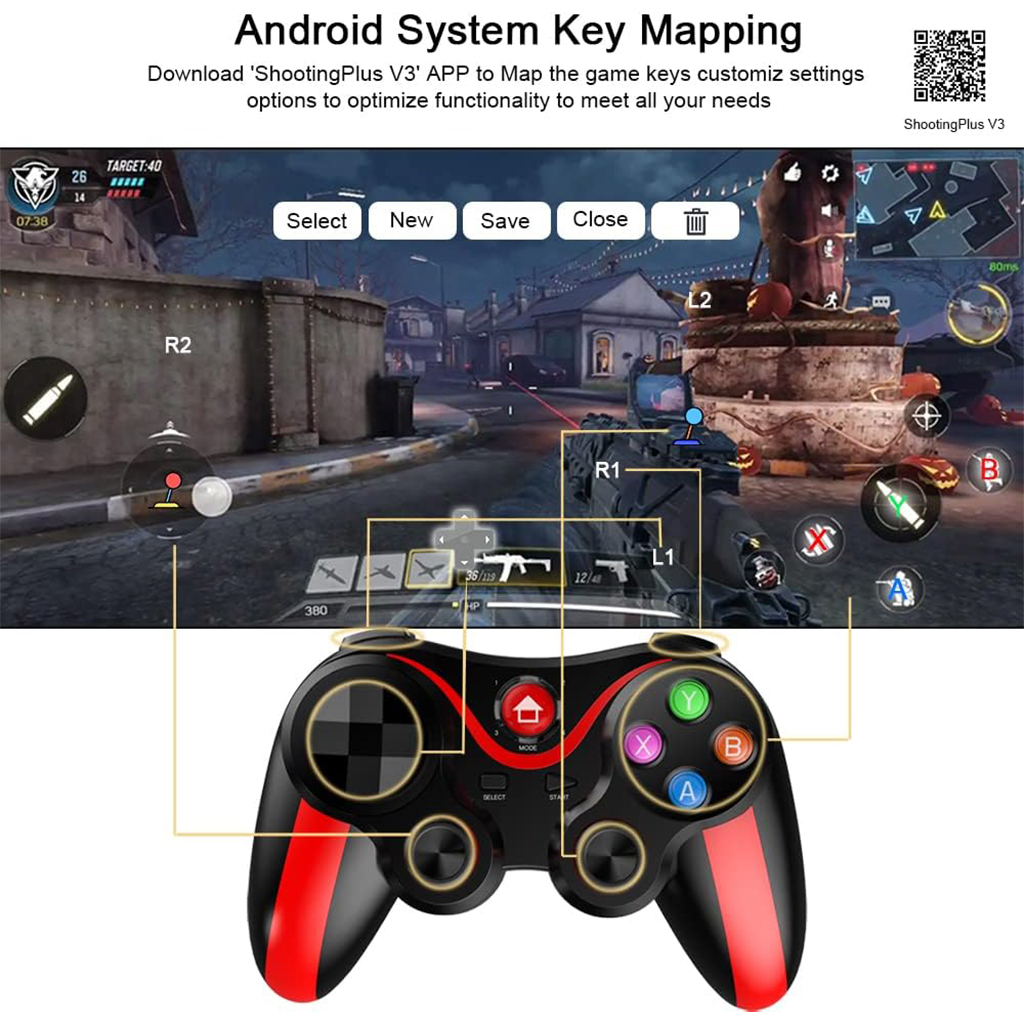 【Mode direct iOS】Appuyez sur « B + Home » pendant 2 secondes pour démarrer la manette, et le voyant LED 4 clignote rapidement. Activez la fonction Bluetooth sur votre iPhone ou iPad, recherchez et sélectionnez « DUALSHOCK 4 Wireless Controller » pour effectuer le couplage. Une fois la connexion établie, le voyant LED sera toujours allumé. Profitez de vos jeux ! Prend en charge la plupart des jeux téléchargés depuis l'Apple Store. • 【Large compatibilité】 Cette manette de jeu sans fil est compatible avec les derniers téléphones mobiles (iOS 13.4+ Android 6.0+). Tels que iPhone 13/12 mini, iPhone 13/12, Phone 13/12 Pro Max, iPhone SE, iPhone X. Samsung Galaxy A53, A52, Galaxy F52, Samsung Note20 Ultra, Samsung Galaxy S22/S22 Ultra, S21/S21 Ultra, Galaxy Tab S8, S8+, Galaxy Tab S7, Galaxy Tab S6 Lite, Google Pixel 6 5 Pro, One Plus 9 Pro, Surface Duo, Asus ROG Phone 5, Oppo, Vivo, Huawei, Realme, Motorola, etc. • 【Prend en charge divers jeux】 Cette manette de jeu Bluetooth mobile prend en charge la plupart des jeux pris en charge par le contrôleur dans l'App Store et Google Play. Tels que Apex Legends Mobile, PUBG Mobile, COD, Battlefield V, NBA 2K19, Monster Hunter World, Fifth Personality, Call of Duty, Knife Out, Rules of Survival, Pick Me Up, Sniper 3D Assassin, Free Fire, Battle Royale : FPS Shooter, Armed Heist, Marvel Contest of Champions/Future Fight, etc. • ADITAM 【Batterie intégrée de 400 mAh et design ergonomique】 Notre manette de jeu mobile dispose d'une batterie au lithium intégrée de 400 mAh, qui peut durer jusqu'à 18 heures lorsqu'elle est complètement chargée. Conception ergonomique pour aider à soulager la fatigue des mains après de longues sessions de jeu. Conseils : veuillez charger la manette environ 5 à 8 heures avant la première opération, et il est nécessaire de lire attentivement le manuel d'utilisation avant toute opération. Si vous avez des questions, veuillez nous contacter à temps. • 【Téléchargez l'application shootingPlus V3】Si votre téléphone est un téléphone Android, utilisez cette manette pour la première fois, vous devez scanner le code QR sur le manuel pour télécharger l'application shootingPlus V3 pour personnaliser les boutons en fonction de vos propres habitudes. Connectez-vous ensuite et jouez au jeu à partir de l'application de jeu d'origine au lieu d'autres plateformes ou simulateurs non autorisés, ne vous inquiétez jamais du bannissement de votre compte de jeu en utilisant d'autres contrôleurs.