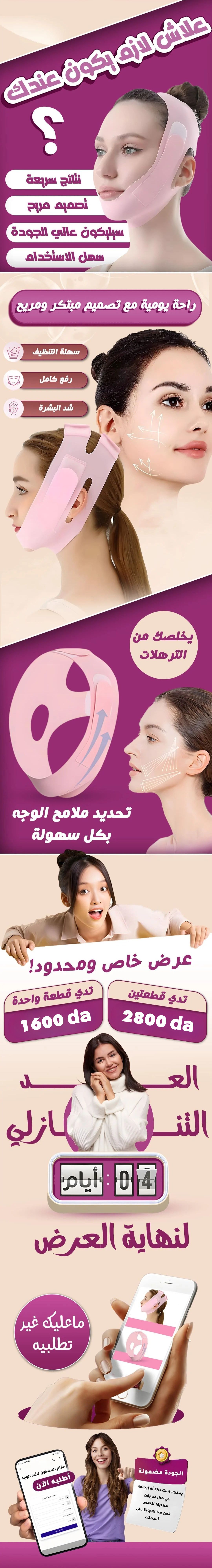 يساعد على شد ترهلات الوجه والرقبة✔️ يبرز خط الفك (V Line) بشكل واضح✔️ يقلل من علامات التقدم في السن✔️ يمنحك مظهرًا أصغر وأكثر ثقة