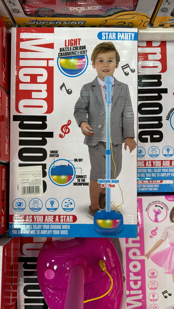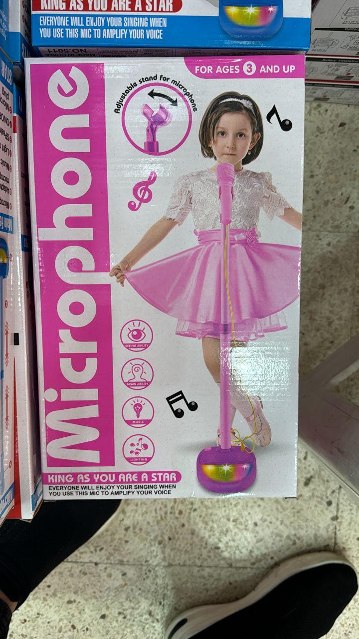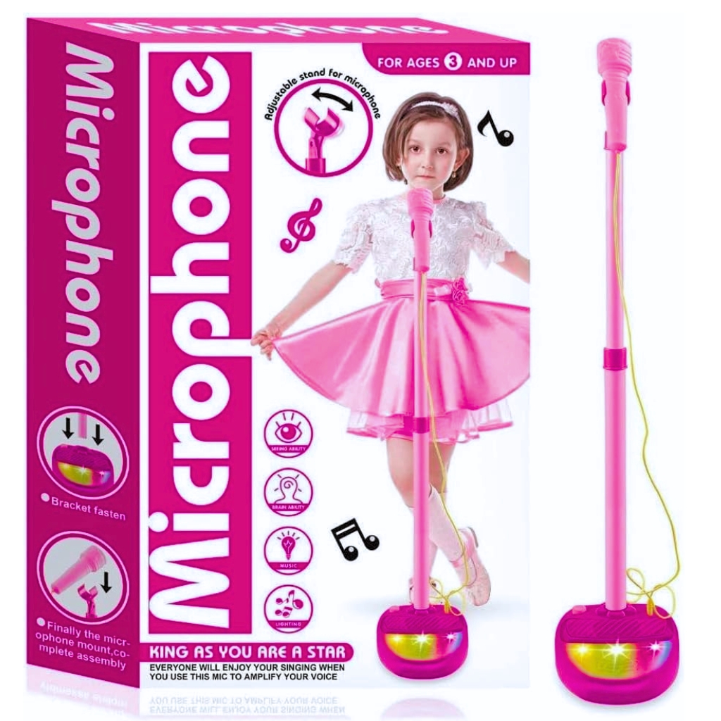Le microphone est un excellent moyen de s'amuser. C'est parfait à la fois pour recevoir et pour donner à l'environnement une touche détendue et amusante. Il peut offrir des moments très agréables en famille et entre amis. • TIGE DE MICROPHONE TÉLESCOPIQUE: Télescopique à trois étages, adaptée à différentes hauteurs de bébé et accompagne le bébé dans sa croissance. • EFFET SONORE : Avec des effets sonores d'applaudissements et jusqu'à 10 effets sonores dynamiques différents. • LUMIÈRE DE SCÈNE: Attirez l'attention des bébés et améliorez l'atmosphère. • PEUT JOUER AVEC LE TÉLÉPHONE : Peut se connecter aux téléphones mobiles et aux MP3. • ALIMENTATION PAR : 3 piles AA (non incluses). CARACTÉRISTIQUES: • Matériau : plastique • Couleur : Rose / Bleu • La taille du trépied est réglable • L'angle du microphone est réglable • Le piédestal joue quelques chansons • La voix de l'enfant sort sur le vrai micro !! • Mesures réglables : • hauteur : 40 cm à 70 cm de hauteur (la hauteur est réglable) • Articles: • 01 trépied • 01 Micro