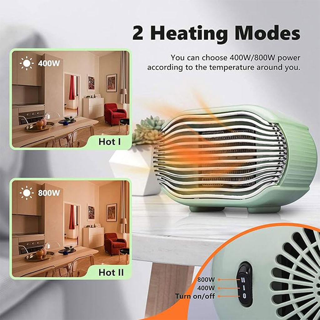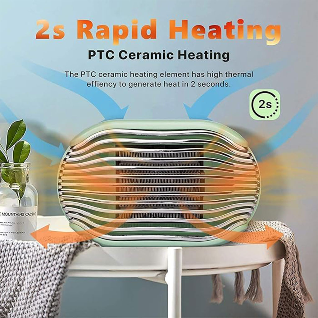 CHAUFFAGE RAPIDE EN 3 SECONDES : Le radiateur électrique adopte un élément chauffant en céramique avancé PTC ; l'efficacité de conversion d'énergie atteint 99 %. Les radiateurs en céramique permettent un chauffage plus rapide et plus efficace. • ★ LONGUE DURÉE DE VIE : Les matériaux PTC sont durables, respectent la santé et l'environnement, pas de collage, pas d'oxydation, durée de vie de chauffage supplémentaire jusqu'à 6000 heures. • ★ PROTECTION DE SÉCURITÉ MULTIPLE : Le réchauffeur d'air portable adopte du plastique ABS avec le grade ignifuge le plus élevé V0, avec une protection anti-surchauffe et une protection anti-renversement, et offre une double protection interne. • ★ Il est particulièrement adapté pour être placé sous le bureau au bureau. Il est confortable pour les pieds, les pieds ne sont pas froids et le corps est naturellement chaud. • ★ FAIBLE BRUIT ET PORTABLE : Les éléments chauffants en céramique PTC utilisent des éléments chauffants en céramique, un faible bruit de 45 dB n'interférera pas avec votre sommeil, votre lecture, votre travail, etc. Le radiateur compact est idéal pour une utilisation dans les bureaux, les bureaux et les tables.
