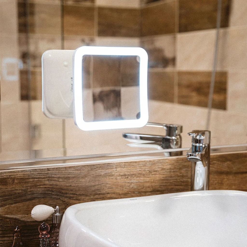 Miroir Rotatif Grossissant avec éclairage LED et ventouse 16 cm