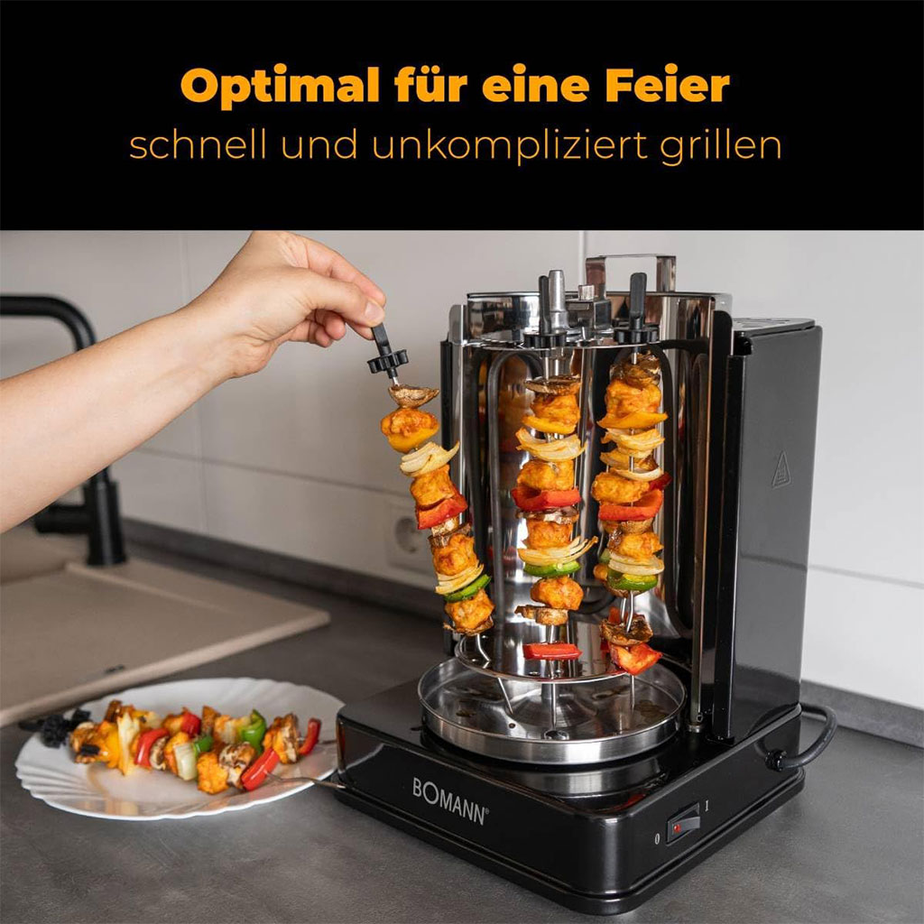 Multi-grill Electrique vertical 3en1 Rôtisserie et Chawarma Bomann 3006CB