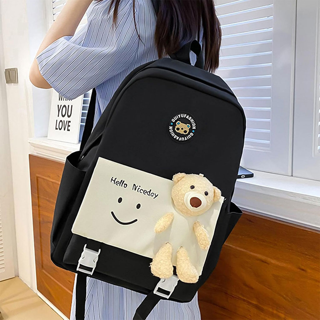 【Sac d'école économique】 Cet ensemble de sac à dos Kawaii a des bretelles douces et épaisses qui réduisent la charge sur vos épaules et un joli design qui vous distingue. La structure intérieure en couches peut répondre à tous vos besoins et le sac à dos est facile à transporter. C'est un sac à dos scolaire pratique et mignon. • 【Force améliorée】Utilisé en toute confiance avec notre ensemble de sac à dos Kawaii. La bandoulière renforcée et la boucle plus solide offrent une qualité et une tenue supérieures, ce qui le rend parfait pour transporter des livres, des ordinateurs portables et d'autres fournitures d'apprentissage. Restez confortable et sans souci tout au long de votre journée. • 【Darling Appearance】Choisissez cet ensemble de sac à dos Kawaii pour afficher votre goût unique. Affichez votre individualité en personnalisant votre look avec de jolis pendentifs en peluche et d'autres accessoires, parfaits pour tout style de bricolage que vous aimez. • 【Choice Matters】Fabriqué en tissu de toile sélectionné, cet ensemble de sac à dos est résistant à l'usure et à la rouille. Il a une fermeture éclair lisse qui est sûre et facile à utiliser. Le sac à dos peut contenir un ordinateur portable de 15 pouces et d'autres éléments essentiels. • 【Indispensable multi-usages】 Élevez votre collection de sacs à dos avec cet ensemble Kawaii ! Peut être utilisé comme sac pour ordinateur portable et mini pochette, il est parfait pour l'école, le travail, les voyages et plus encore. Facile à assortir et conçu pour durer, cet ensemble de sac à dos polyvalent est un incontournable pour les filles en plein air. • Le Porte Clé affiché sur les photos n'est pas inclus